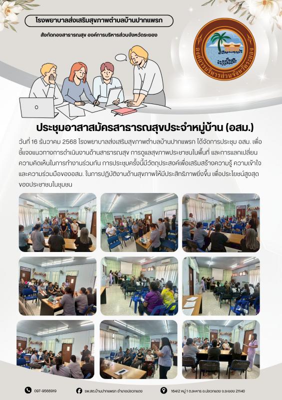 วีนที่ 16 ธันวาคม 2568 รพ.สต.บ้านปากแพรก จัดการประชุม อสม.เพื่อชี้แจงแนวทางการดำเนินงานด้านสาธารณสุข การดูแลประชาชนในพื้นที่ และการแลกเปลี่ยนความคิดเห็นในการทำงานร่วมกัน 17 ธันวาคม 2568 12