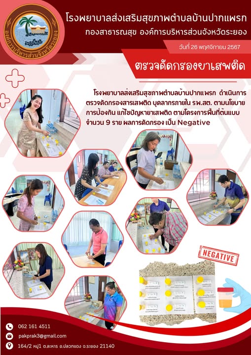 วันที่ 26 พ.ย. 2567 ดำเนินการตรวจคัดกรองสารเสพติด บุคลากรภายใน รพ.สต.