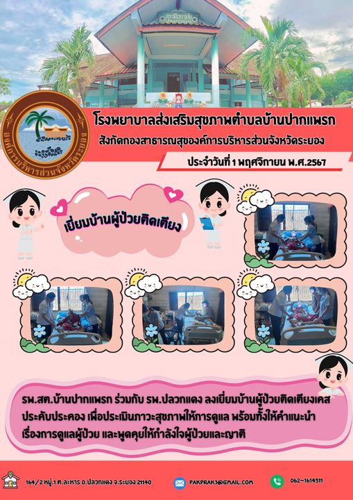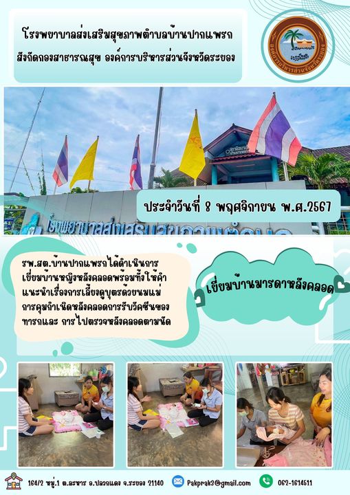 วันที่ 8 พ.ย. 2567 เยี่ยมบ้านหญิงหลังคลอด พร้อมทั้งให้คำแนะนำเรื่องการเลี้ยงดูบุตร 12 พฤศจิกายน 2567 387