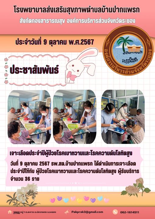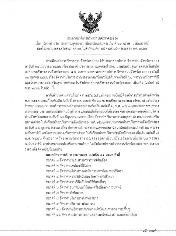 ประกาศ อบจ.ระยอง เรื่อง อัตราค่าบริการสาธารณสุขของ สอน.รพ.สต.ในสังกัด อบจ.ระยอง พ.ศ.2567 15 พฤศจิกายน 2567 1,324