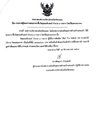 ประกาศผู้ชนะการจัดซื้อวัสดุคอมพิวเตอร์ จำนวน 4 รายการ โดยวิธีเพาะเจาะจง