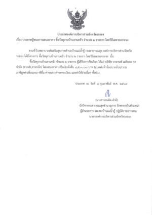 ประกาศผู้ชนะการเสนอราคา ซื้อวัสดุงานบ้านงานครัว จำนวน 2 รายการ โดยวิธีเฉพาะเจาะจง 4 กุมภาพันธ์ 2569 27