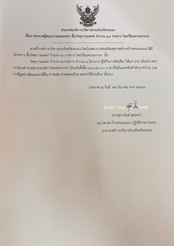 ประกาศผู้ชนะเสนอราคาจัดซื้อจัดจ้าง อื่นๆ ที่เกี่ยวข้อง
