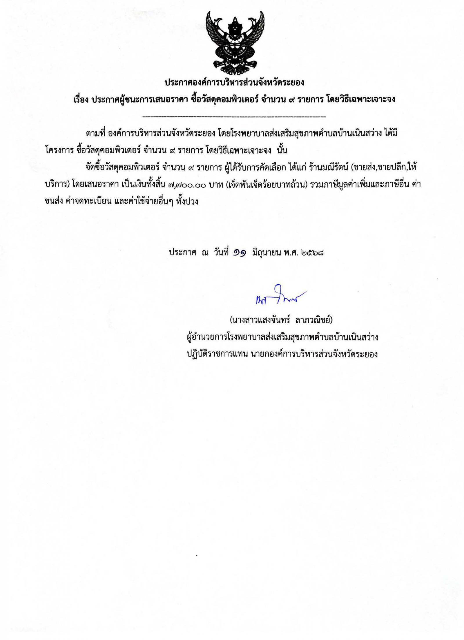 ประกาศผู้ชนะการเสนอราคา ซื้อวัสดุคอมพิวเตอร์ จำนวน 9 รายการ โดยวีธีเฉพาะเจาะจง