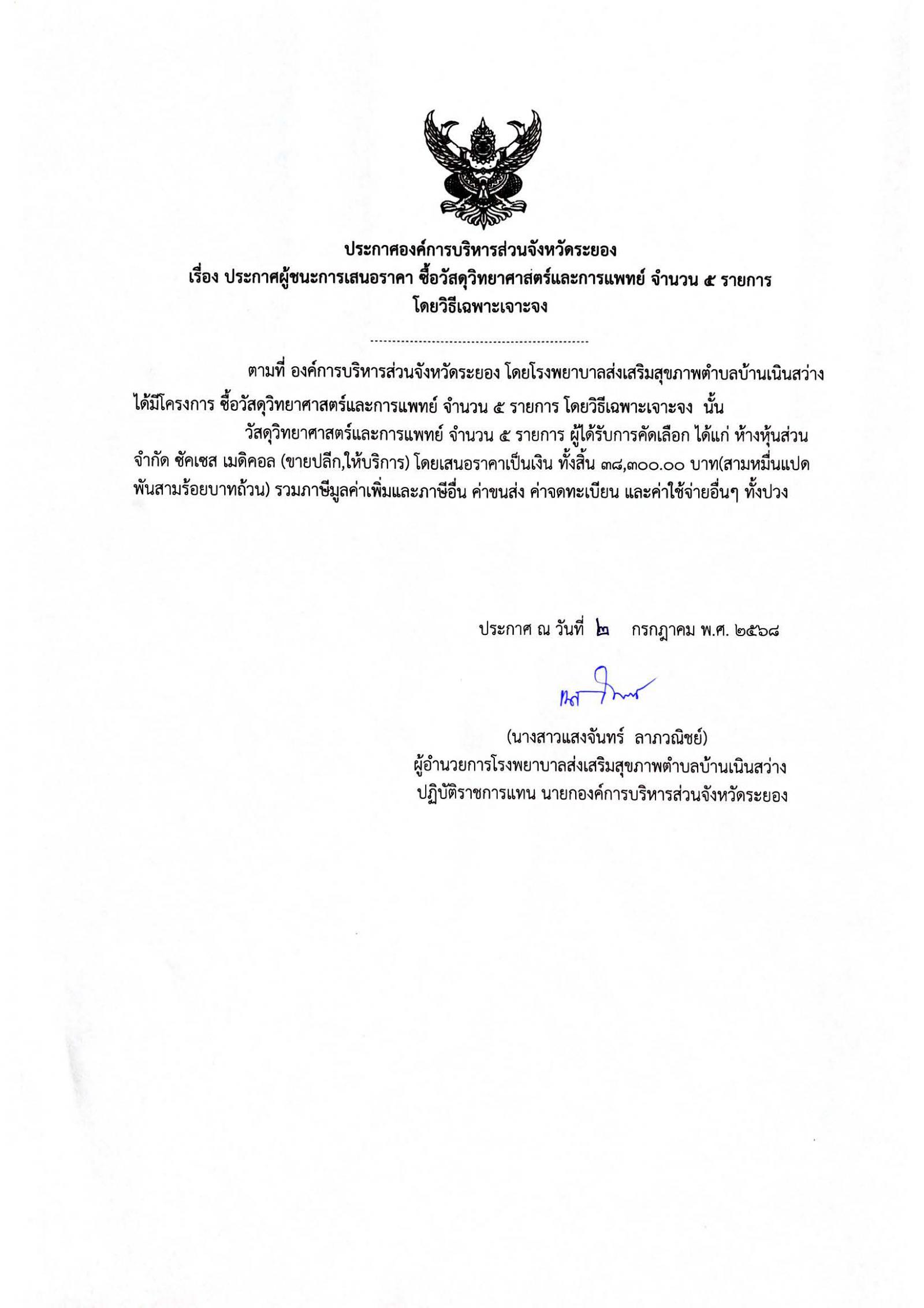 ประกาศผู้ชนะการเสนอราคา ซื้อวัสดุวิทยาศาสตร์และการแพทย์ จำนวน 5 รายการ โดยวิธีเฉพาะเจาะจง