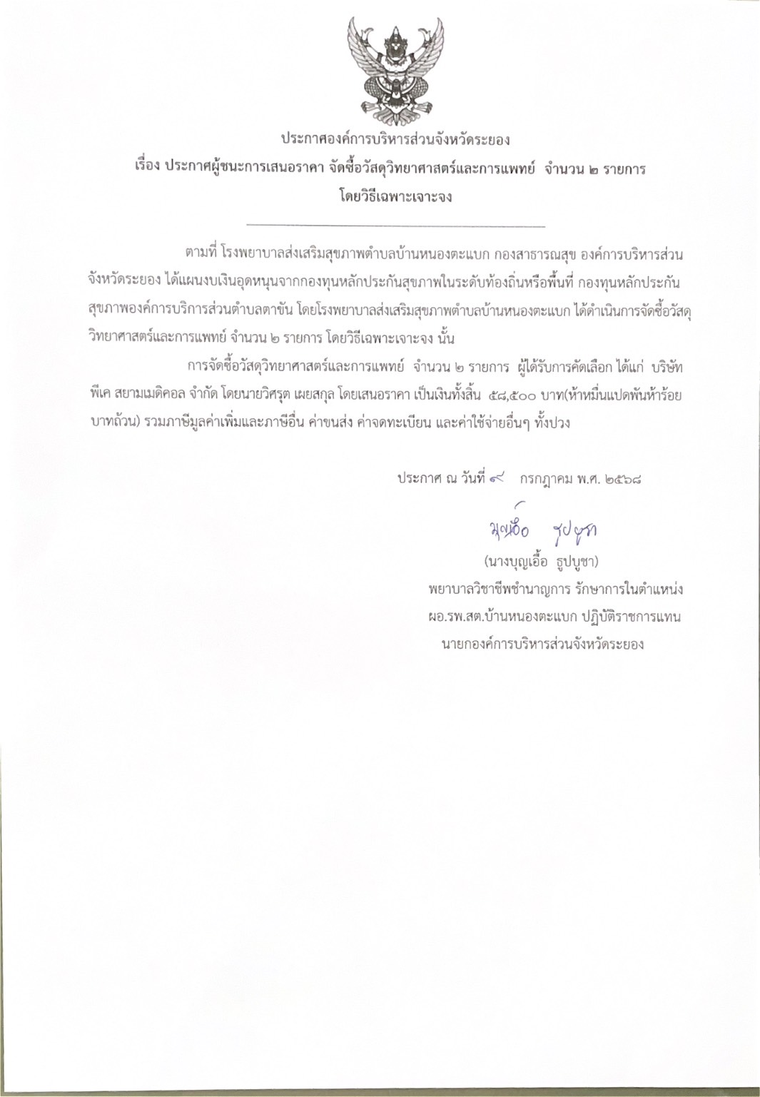 ประกาศผู้ชนะการเสนอราคา จัดซื้อวัสดุวิทยาศาสตร์และการแพทย์ จำนวน 2 รายการ โดยวิธีเฉพาะเจาะจง