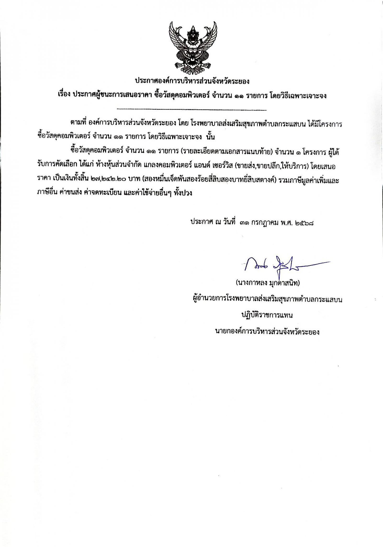 ประกาศผู้ชนะการเสนอราคา ซื้อวัสดุคอมพิวเตอร์ จำนวน 11 รายการ โดยวิธีเฉพาะเจาะจง