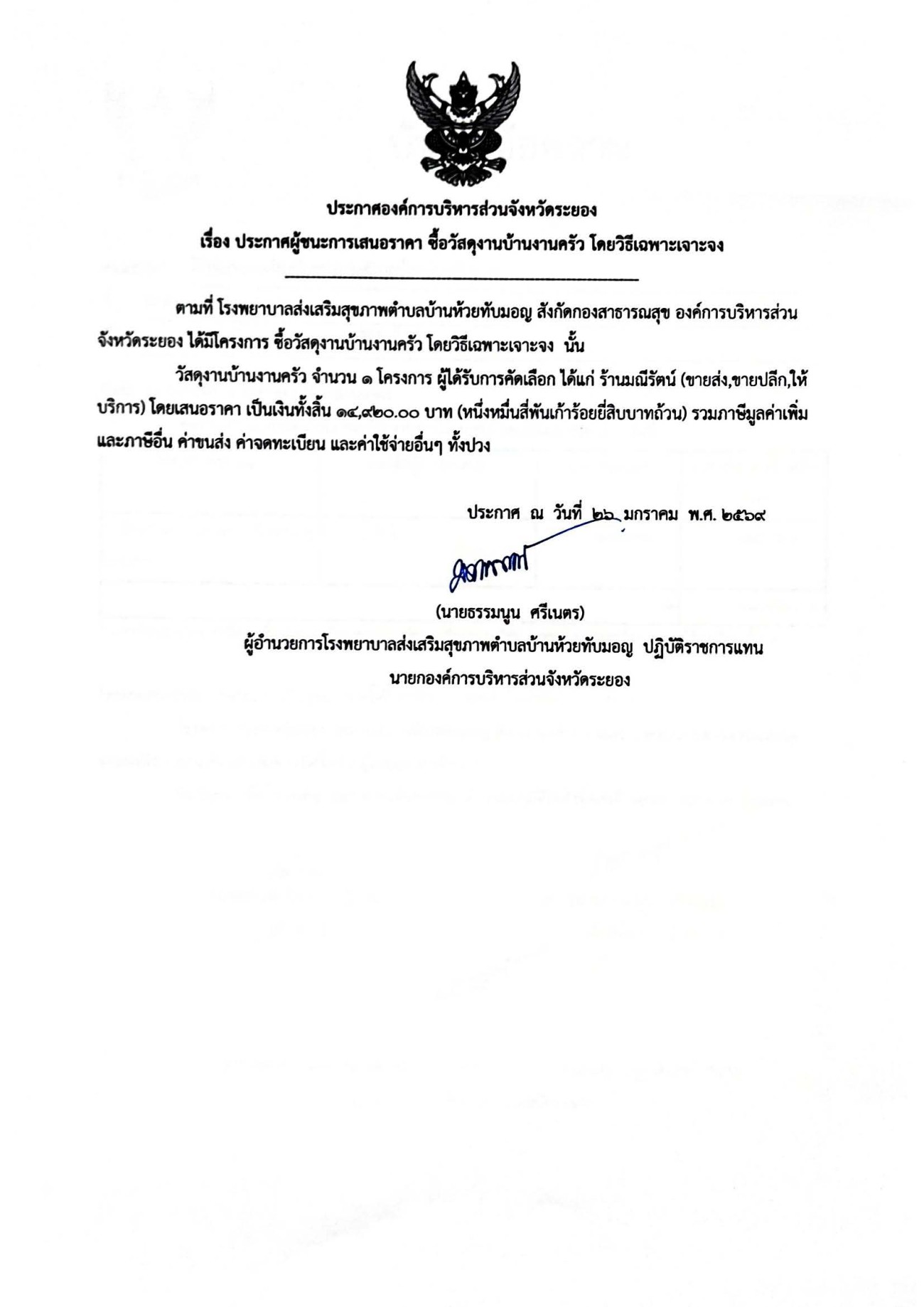 ประกาศผู้ชนะการเสนอราคา ซื้อวัสดุงานบ้านงานครัว โดยวิธีเฉพาะเจาะจง