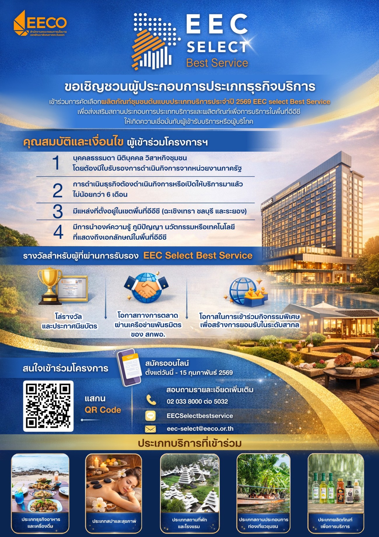 ประชาสัมพันธ์กิจกรรมการคัดเลือกผลิตภัณฑ์ชุมชนต้นแบบประเภทบริการ (EEC Select Best Service)