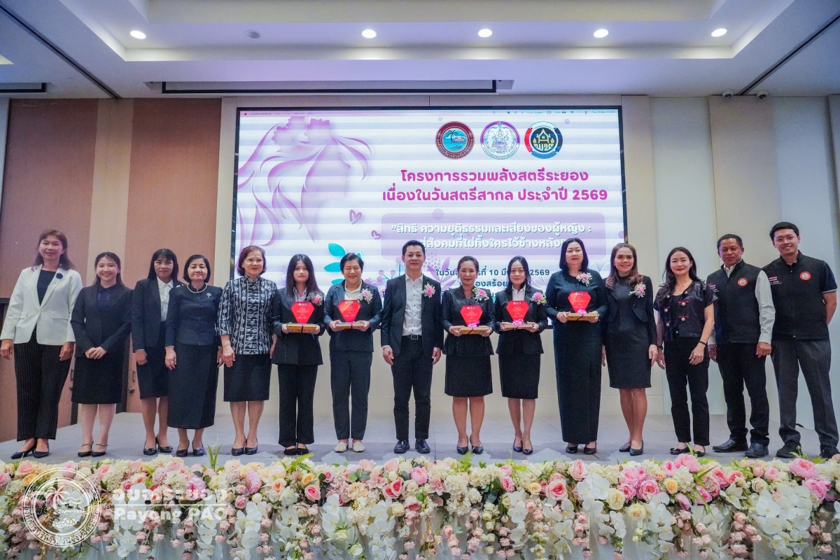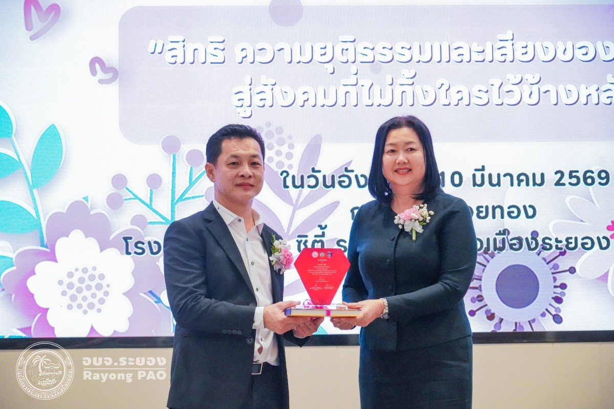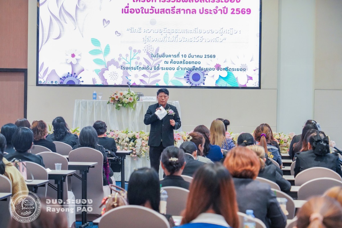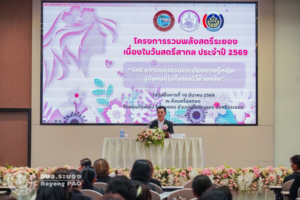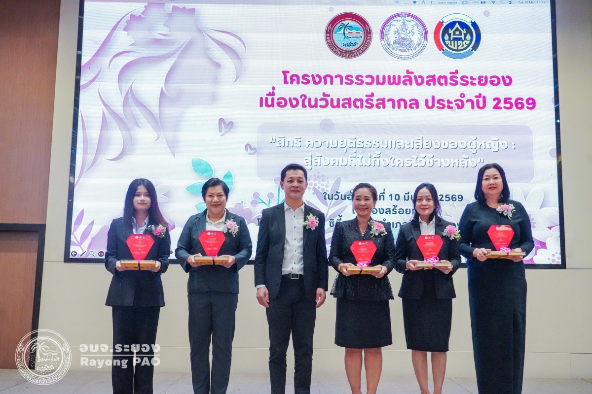 วันที่ 10 มีนาคม 2569 เวลา 13.30 น. นายกิตติ เกียรติ์มนตรี รองนายกองค์การบริหารส่วนจังหวัดระยอง (1) ได้ให้เกียรติเป็นประธานในการเปิดโครงการรวมพลังสตรีระยอง เนื่องในวันสตรีสากลประจำปี 2569 “สิทธิ ความยุติธรรม และเสียงของผู้หญิง : สู่สังคมที่ไม่ทิ้งใครไว้ข้างหลัง” พร้อมด้วยแพทย์หญิงสมบัติ ชุติมานุกูล เลขานุการนายกองค์การบริหารส่วนจังหวัดระยอง, สมาชิกสภาองค์การบริหารส่วนจังหวัดระยอง ,หัวหน้าส่วนราชการ และเจ้าหน้าที่ที่เกี่ยวข้อง และมีนางสาวธัญชนก ศรีรัตน์ รองปลัดองค์การบริหารส่วนจังหวัดระยอง เป็นผู้กล่าวรายงานถึงวัตถุประสงค์ของการจัดโครงการ ซึ่งได้รับเกียรติจากนางชนินันต์ วงศ์ไตรรัตน์ นายกเหล่ากาชาดจังหวัดระยอง เป็นผู้อ่านสาสน์วันสตรีสากล ซึ่งภายในโครงการมีการจัดกิจกรรมจับฉลากมอบรางวัลพิเศษ 10 รางวัล ,กิจกรรมมอบโล่เชิดชูเกียรติสตรีดีเด่นจังหวัดระยองจำนวน 5 รางวัล, กิจกรรมการแสดงcover dance จากวงฮาเซลล์, การบรรยายให้ความรู้ ในหัวข้อ “สิทธิ ความยุติธรรม และเสียงของผู้หญิง” โดย นายโสภณ แก้วล้อมทรัพย์ พัฒนาสังคมและความมั่นคงของมนุษย์จังหวัดระยอง และการมอบข้อเสนอจากเวทีสมัชชาสตรีระดับจังหวัดระยอง ต่อผู้ว่าราชการจังหวัดระยองผ่านพัฒนาสังคมและความมั่นคงของมนุษย์จังหวัดระยอง ณ ห้องสร้อยทอง โรงแรมโกลเด้น ซิตี้ ระยอง