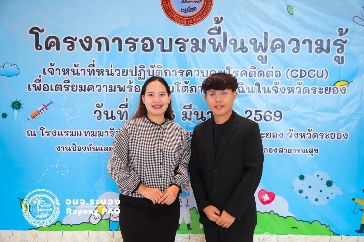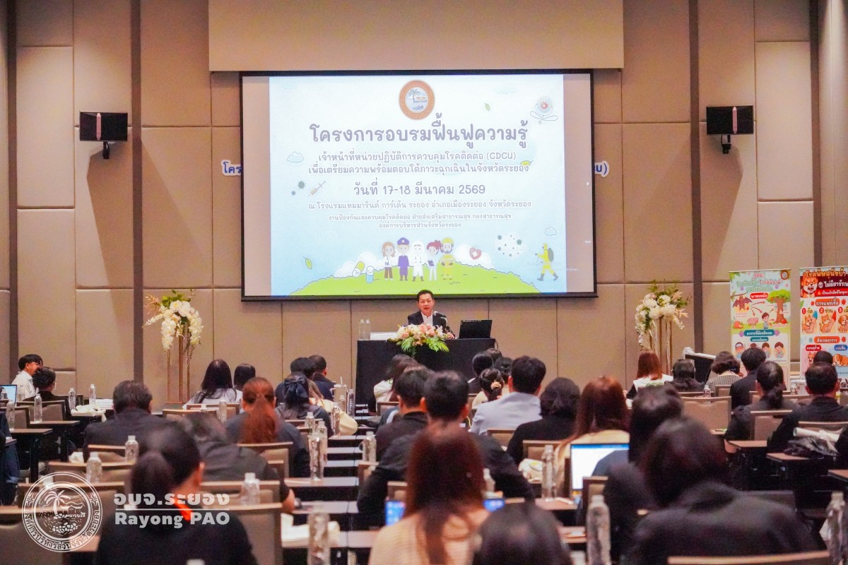 วันที่ 17 มีนาคม 2569 เวลา 09.00 น. นายกิตติ เกียรติ์มนตรี รองนายกองค์การบริหารส่วนจังหวัดระยอง เป็นประธานกล่าวเปิด "โครงการอบรมฟื้นฟูความรู้เจ้าหน้าที่หน่วยปฏิบัติการควบคุมโรคติดต่อ CDCU เพื่อเตรียมความพร้อมตอบโต้ภาวะฉุกเฉิน" โดยมีนายสุริยะ ศิริวัฒน์ ผู้อำนวยการกองสาธารณสุข กล่าวถึงวัตถุประสงค์ของการจัดโครงการฯ พร้อมด้วย นายแพทย์ชัยวัฒน์ จัตตุพร ผู้ทรงคุณวุฒิด้านการแพทย์และหลักประกันสุขภาพ และนายแพทย์สุนทร เหรียญภูมิการกิจ ผู้ทรงคุณวุฒิด้านการแพทย์และเวชกรรมป้องกัน ให้เกียรติเข้าร่วมในพิธีเปิดโครงการดังกล่าว ณ โรงแรมแทมมารินด์ การ์เด้น ระยอง