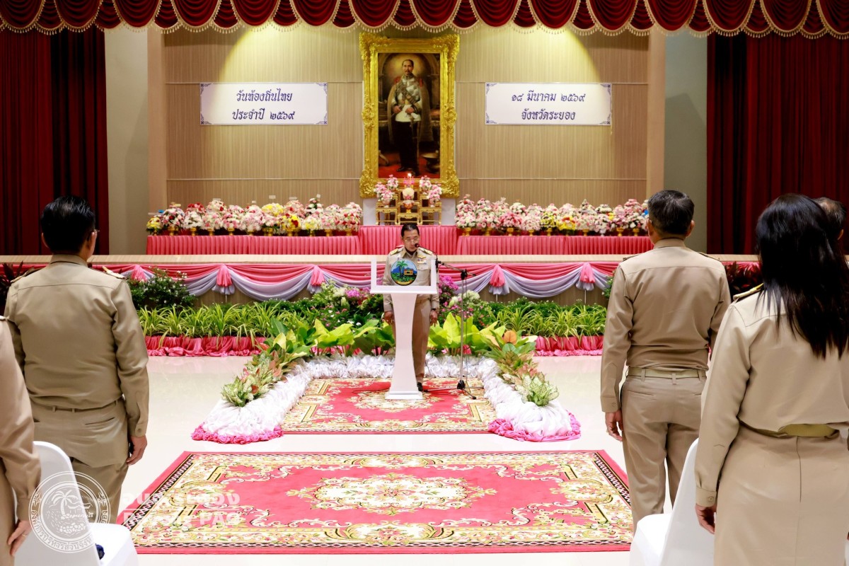 วันที่ 18 มีนาคม 2569 เวลา 07.30 น. ณ หอประชุมศูนย์ราชการจังหวัดระยอง นางณิชาพร คุ้มท้วม ผู้อำนวยการกองทรัพยากรธรรมชาติและสิ่งแวดล้อม พร้อมด้วย ข้าราชการ พนักงาน สังกัดอบจ.ระยอง เข้าร่วมพิธีถวายราชสักการะฯ พระบาทสมเด็จพระจุลจอมเกล้าเจ้าอยู่หัว รัชกาลที่ 5 เนื่องในโอกาส “วันท้องถิ่นไทย ประจำปี 2569” โดยมี นายไตรภพ วงศ์ไตรรัตน์ ผู้ว่าราชการจังหวัดระยอง เป็นประธานในพิธีนำผู้เข้าร่วมพิธีวางพานพุ่มดอกไม้สดถวายราชสักการะ และกล่าวถวายราชสดุดีน้อมรำลึกถึงพระมหากรุณาธิคุณเบื้องหน้าพระบรมสาทิศลักษณ์ รัชกาลที่ 5 เนื่องในโอกาส “วันท้องถิ่นไทย ประจำปี 2569” เพื่อรำลึกในพระมหากรุณาธิคุณของพระบาทสมเด็จพระจุลจอมเกล้าเจ้าอยู่หัว ทรงมีพระบรมราชโองการให้ยกฐานะตำบลท่าฉลอมขึ้นเป็น “สุขาภิบาลท่าฉลอม” เมื่อวันที่ 18 มีนาคม 2448 ซึ่งเป็นจุดเริ่มต้นของการกระจายอำนาจการปกครองให้ประชาชนในท้องถิ่น