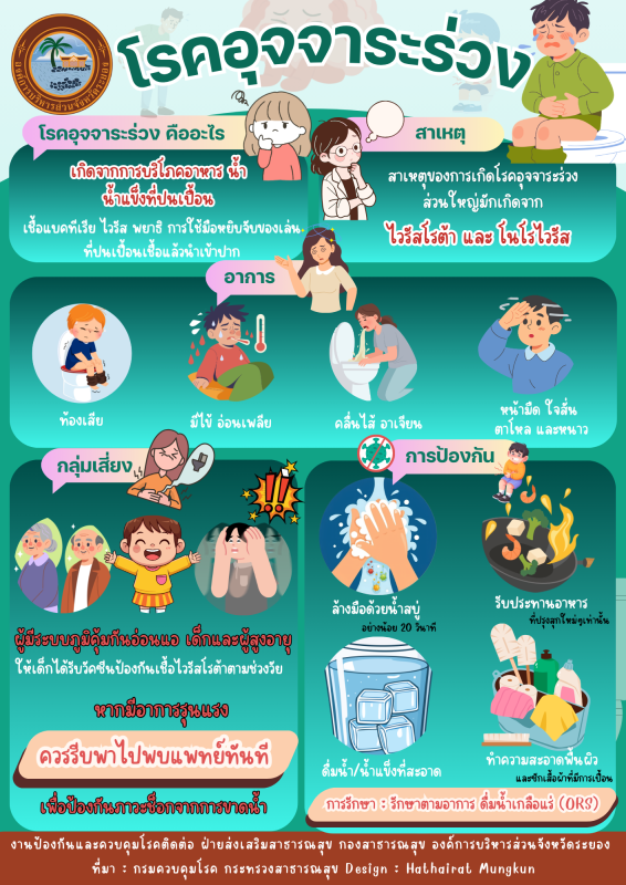 ด้วยสำนักงานสาธารณสุขจังหวัดระยอง ได้รายงานสถานการณ์โรคติดต่อที่ต้องเฝ้าระวัง จำนวน ๖๑ โรค ตามประกาศรายชื่อโรคที่ต้องเฝ้าระวัง พ.ศ. ๒๕๖๒ ซึ่งรายงานผ่านระบบเฝ้าระวังทางระบาดวิทยาในรูปแบบดิจิทัล (Digital Disease Surveillance: DDS) และเพื่อการควบคุมและป้องกันโรคให้มีประสิทธิภาพ กองระบาดวิทยา จึงจัดทำ Dashboard ขึ้น เพื่อใช้เป็นแนวทางสำหรับการควบคุมและจัดการโรคติดต่อจึงได้นำข้อมูลโรคที่ต้องเฝ้าระวังและรายงานผ่านระบบ D506 มาวิเคราะห์สถานการณ์โรคติดต่อที่ต้องเฝ้าระวังของจังหวัดระยอง ซึ่งเป็นข้อมูลวันที่ ๑ มกราคม ๒๕๖๙ ถึง ๓๐ มีนาคม ๒๕๖๙ พบว่า โรคติดต่อที่มีจำนวนผู้ป่วยสูงสุด ๕ อันดับแรกในจังหวัดระยอง คือ อุจจาระร่วง คิดเป็นอัตราป่วย ๘๒๑.๑ ต่อประชากรแสนคน รองลงมาคือ ไข้หวัดใหญ่ คิดเป็นอัตราป่วย ๔๐๘.๑ ต่อประชากรแสนคน ปอดอักเสบ คิดเป็นอัตราป่วย ๑๔๕.๒ ต่อประชากรแสนคน อาหารเป็นพิษ คิดเป็นอัตราป่วย ๔๐.๓ ต่อประชากรแสนคน และสุกใส คิดเป็นอัตราป่วย ๓๐.๕ ต่อประชากรแสนคน ตามลำดับ ทั้งนี้ ได้วิเคราะห์สถานการณ์โรคติดต่อรายอำเภอ เพื่อเป็นข้อมูลให้สถานีอนามัยเฉลิมพระเกียรติ ๖๐ พรรษา นวมินทราชินี และโรงพยาบาลส่งเสริมสุขภาพตำบล สังกัดองค์การบริหารส่วนจังหวัดระยอง เฝ้าระวังและควบคุมโรคติดต่อให้แก่ประชาชนในพื้นที่ ต่อไป รายละเอียดปรากฏตามเอกสารที่แนบมาพร้อมนี้