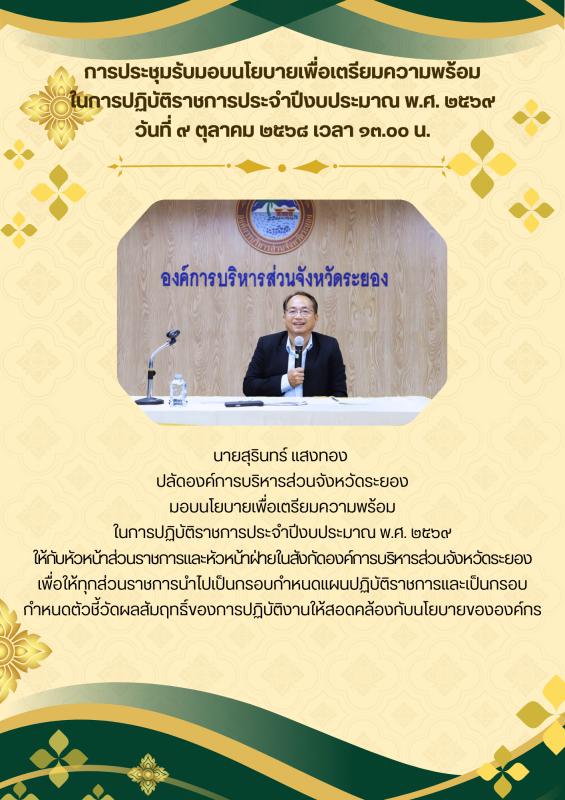 การประชุมรับมอบนโยบายเพื่อเตรียมความพร้อมในการปฏิบัติราชการประจำปีงบประมาณ พ.ศ. 2569 วันที่ 9 ตุลาคม 2568 เวลา 13.00 น. 9 ตุลาคม 2568 166