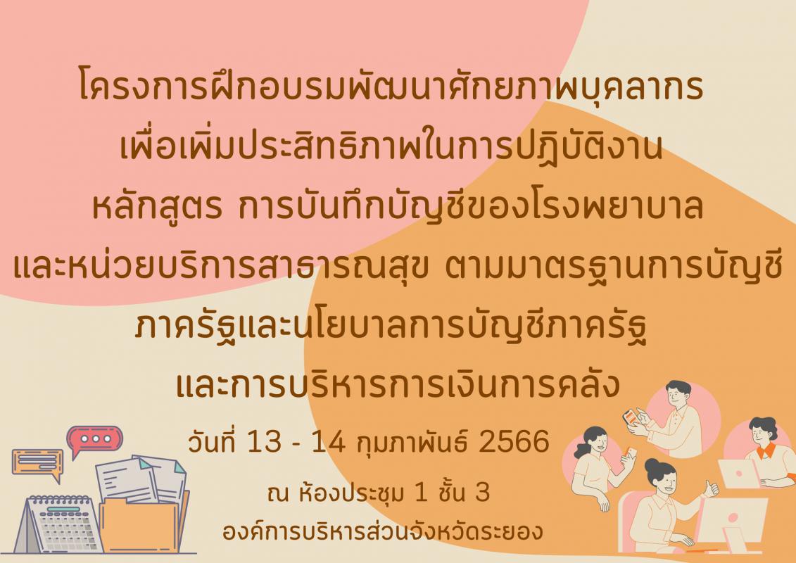 โครงการฝึกอบรมพัฒนาศักยภาพบุคลากร เพื่อเพิ่มประสิทธิภาพในการปฏิบัติงาน หลักสูตร การบันทึกบัญชีของโรงพยาบาล และหน่วยบริการสาธารณสุข ตามมาตรฐานการบัญชีภาครัฐและนโยบาลการบัญชีภาครัฐ และการบริหารการเงินการคลัง 3 มีนาคม 2566 508