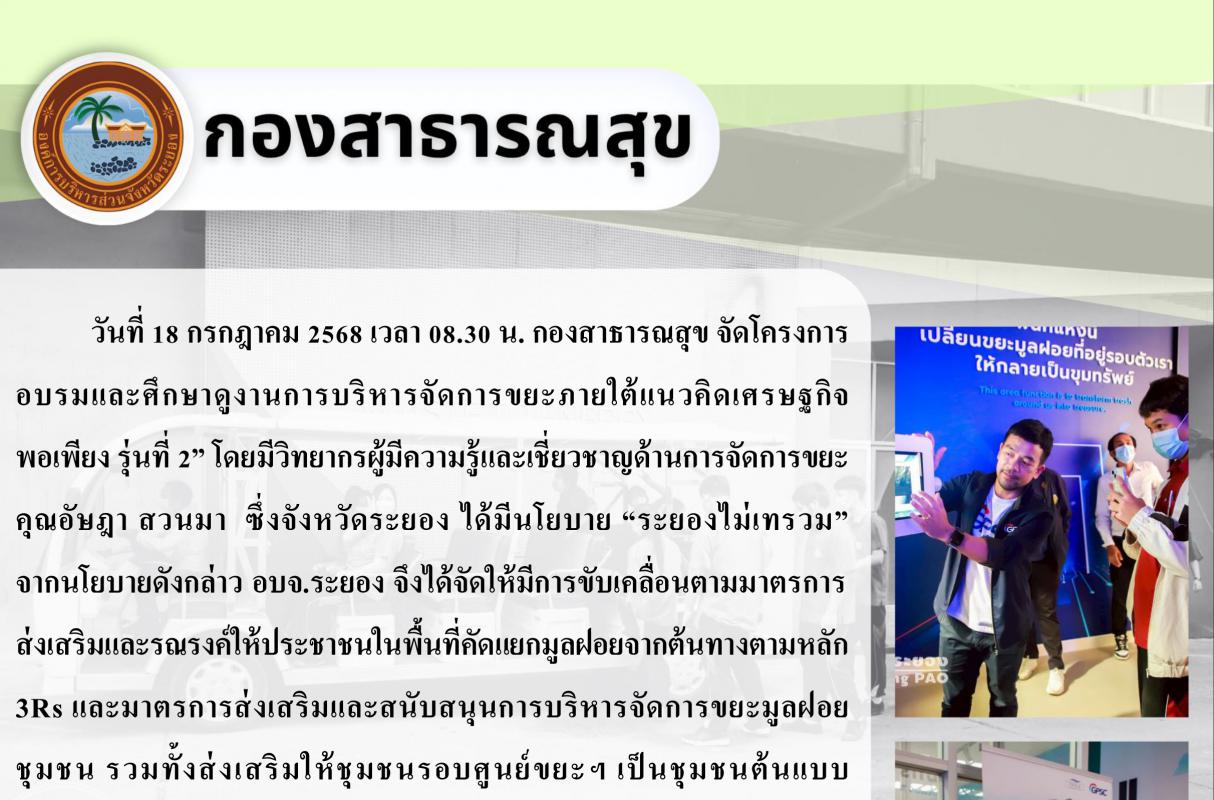 โรงเรียนมัธยมตากสินระยอง เข้าร่วมโครงการอบรมและศึกษาดูงานการบริหารจัดการขยะภายใต้แนวคิดเศรษฐกิจพอเพียง รุ่นที่ 2 18 กรกฏาคม 2568 742