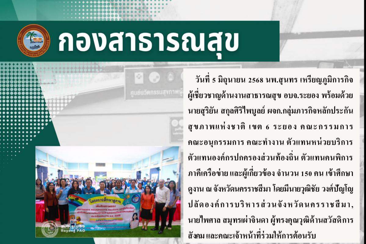 กองทุนฟื้นฟูสมรรถภาพที่จำเป็นต่อสุขภาพจังหวัดระยอง เข้าศึกษาดูงานเพื่อเพิ่มศักยภาพในการทำงานของคณะกรรมการ คณะอนุกรรมการ คณะทำงาน และผู้ที่เกี่ยวข้อง สำหรับพัฒนาระบบจัดบริการและอุปกรณ์เครื่องช่วยความพิการ ปีงบประมาณ 2568 5 มิถุนายน 2568 298