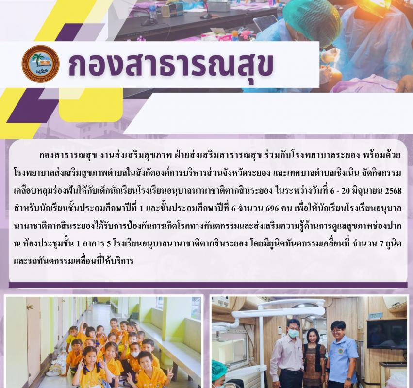 กิจกรรมเคลือบหลุมร่องฟันให้กับเด็กนักเรียนโรงเรียนอนุบาลนานาชาติตากสินระยอง ในระหว่างวันที่ 6 - 20 มิถุนายน 2568 สำหรับนักเรียนชั้นประถมศึกษาปีที่ 1 และชั้นประถมศึกษาปีที่ 6 6 มิถุนายน 2568 304