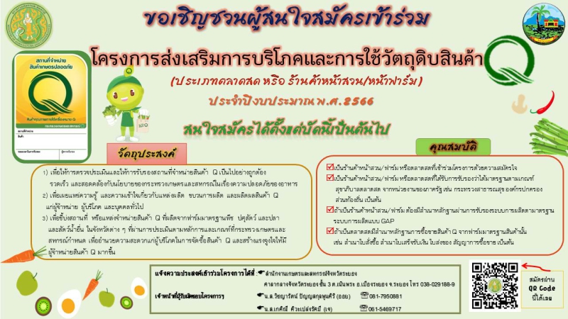 เชิญชวนผู้ประกอบการร้านอาหาร สมัครเข้าร่วม "โครงการร้านอาหารวัตถุดิบปลอดภัยเลือกใช้สินค้า Q" (Q RESTAURANT) ประจำปี ๒๕๖๖ 8 พฤศจิกายน 2565 624