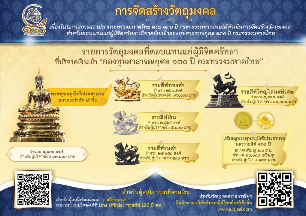ประชาสัมพันธ์การสร้างวัตถุมงคล เนื่องในโอกาสการสถาปนากระทรวงมหาดไทย ครบ ๑๓๐ ปี