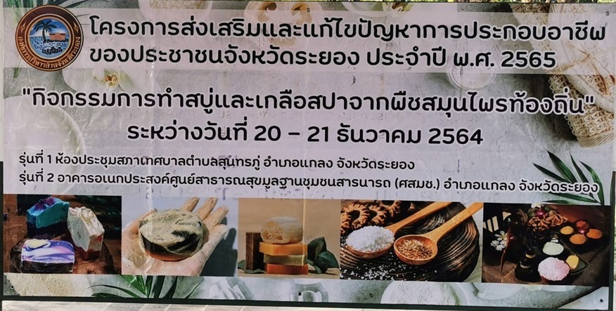 ขอเชิญเข้าร่วมโครงการส่งเสริมและแก้ไขปัญหาการประกอบอาชีพของประชาชนจ.ระยองประจำปีพ.ศ.2565 "กิจกรรมการทำสบู่และเกลือจากสปาจากพืชสมุนไพรท้องถิ่น" 8 ธันวาคม 2564 595