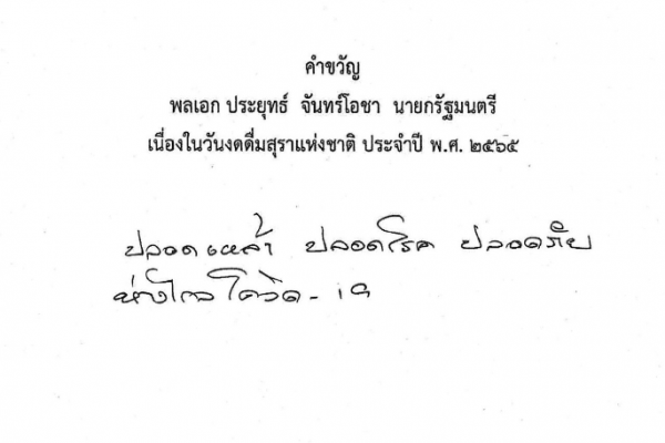 ขอความร่วมมือสนับสนุนกิจกรรม "วันงดดื่มสุราแห่งชาติ ประจำปี พ.ศ.๒๕๖๕"