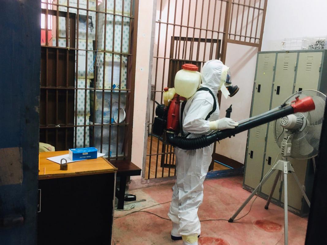 ฝ่ายป้องกันและบรรเทาสาธารณภัยฉีดพ่นน้ำยาฆ่าเชื้อ
