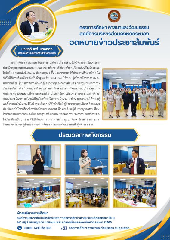 โครงการประเมินคุณภาพภายในและภายนอกสถานศึกษา สังกัดองค์การบริหารส่วนจังหวัดระยอง ประจำปี พ.ศ. 2568
