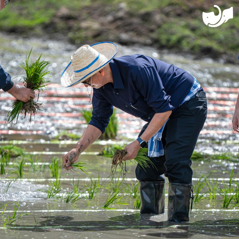 “ดำนาตามรอยพ่อ สานต่อความพอเพียง”บริเวณแปลงนาสาธิต