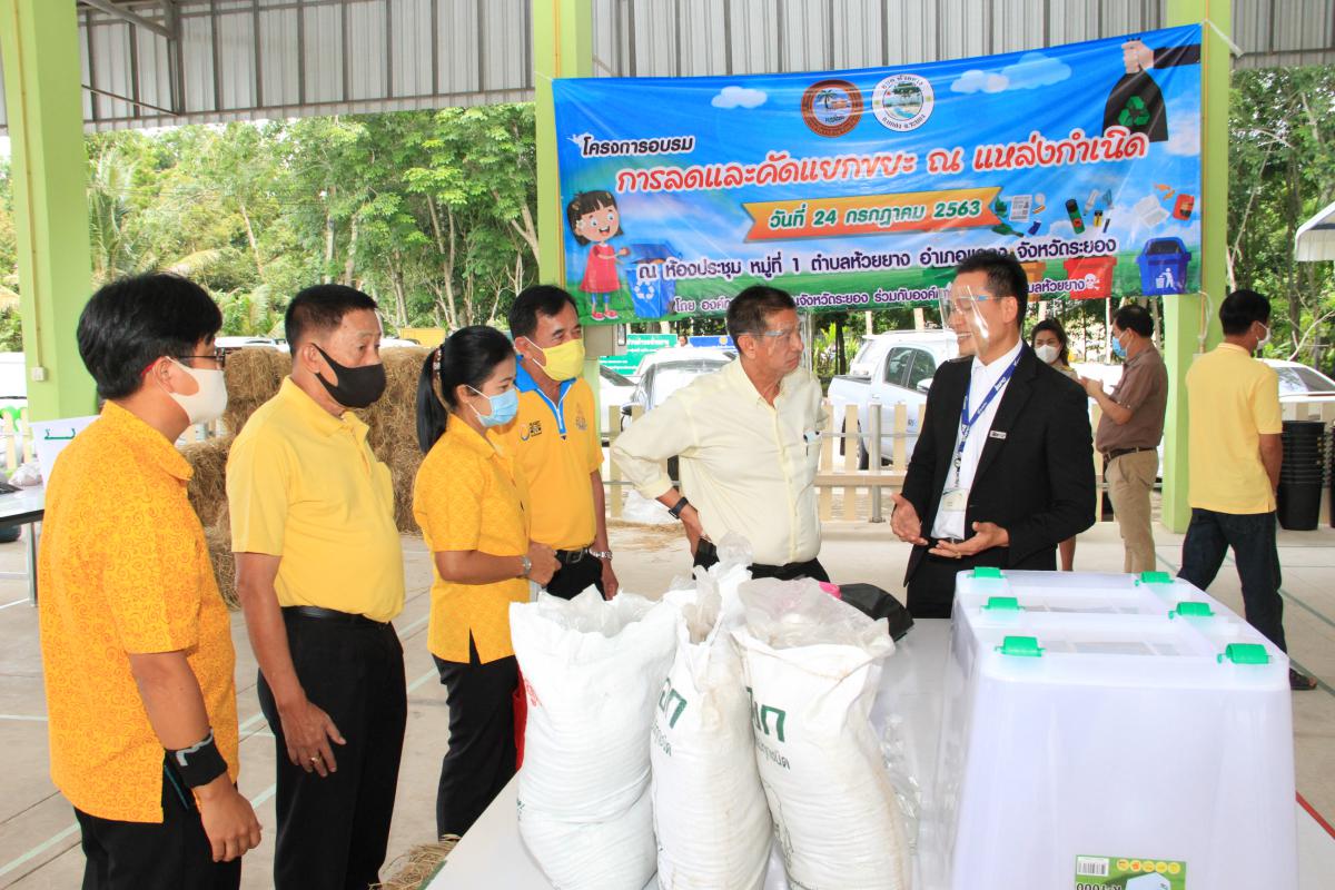 วันที่ 24 กรกฎาคม 2563 เวลา 08.30 น. ณ ห้องประชุม หมู่ที่ 1 ตำบลห้วยยาง อำเภอแกลง จังหวัดระยอง กองทรัพยากรธรรมชาติและสิ่งแวดล้อม ได้จัดทำโครงการอบรมการลดและคัดแยกขยะ ณ แหล่งกำเนิด โดยมีนายปิยะ ปิตุเตชะ นายกองค์การบริหารส่วนจังหวัดระยอง ร่วมเปิดโครงการอบรมการลดและคัดแยกขยะ ณ แหล่งกำเนิด โดยมีวัตถุประสงค์เพื่อให้ประชาชนโดยรอบพื้นที่สถานีขนถ่ายขยะมูลฝอยชุมชน (ศูนย์อำเภอแกลง) มีจิตสำนึกและตระหนักเรื่องการคัดแยกขยะจากแหล่งกำเนิด การนำขยะมูลฝอยมากลับใช้ประโยชน์ใหม่ โดยจัดกิจกรรมอบรมให้ความรู้ ความเข้าใจเกี่ยวกับการคัดแยกขยะมูลฝอยในครัวเรือนให้กับประชาชนในพื้นที่โดยรอบสถานีขนถ่ายขยะมูลฝอยชุมชน (ศูนย์อำเภอแกลง) ตำบลห้วยยาง อำเภอแกลง จังหวัดระยอง