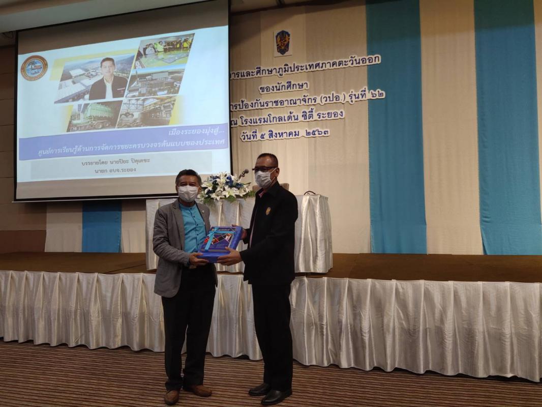 ในวันที่ 5 สิงหาคม 2563 ” ณ โรงแรมโกลเด้นซิตี้ ห้องสร้อยทอง 1-2 อาคารคอนเวนชั่นฮอลล์ ชั้น 2 เวลา 13.00 น. เป็นต้นไป กองทรัพยากรธรรมชาติและสิ่งแวดล้อม องค์การบริหารส่วนจังหวัดระยอง ได้ต้อนรับคณะนักศึกษาหลักสูตรการป้องกันราชอาณาจักร (วปอ.) รุ่นที่ 62 พร้อมด้วยคณาจารย์และเจ้าหน้าที่เดินทางมาดูกิจการและศึกษาภูมิประเทศภาคตะวันออก และได้จัดเตรียมบรรยายสรุปเรื่อง “ระยองโมเดลกับการขจัดปัญหาอย่างยั่งยืน” โดยมีนายมนตรี ชนะชัยวิบูลวัฒน์ ที่ปรึกษานายกองค์การบริหารส่วนจังหวัดระยอง เป็นวิทยากรบรรยาย