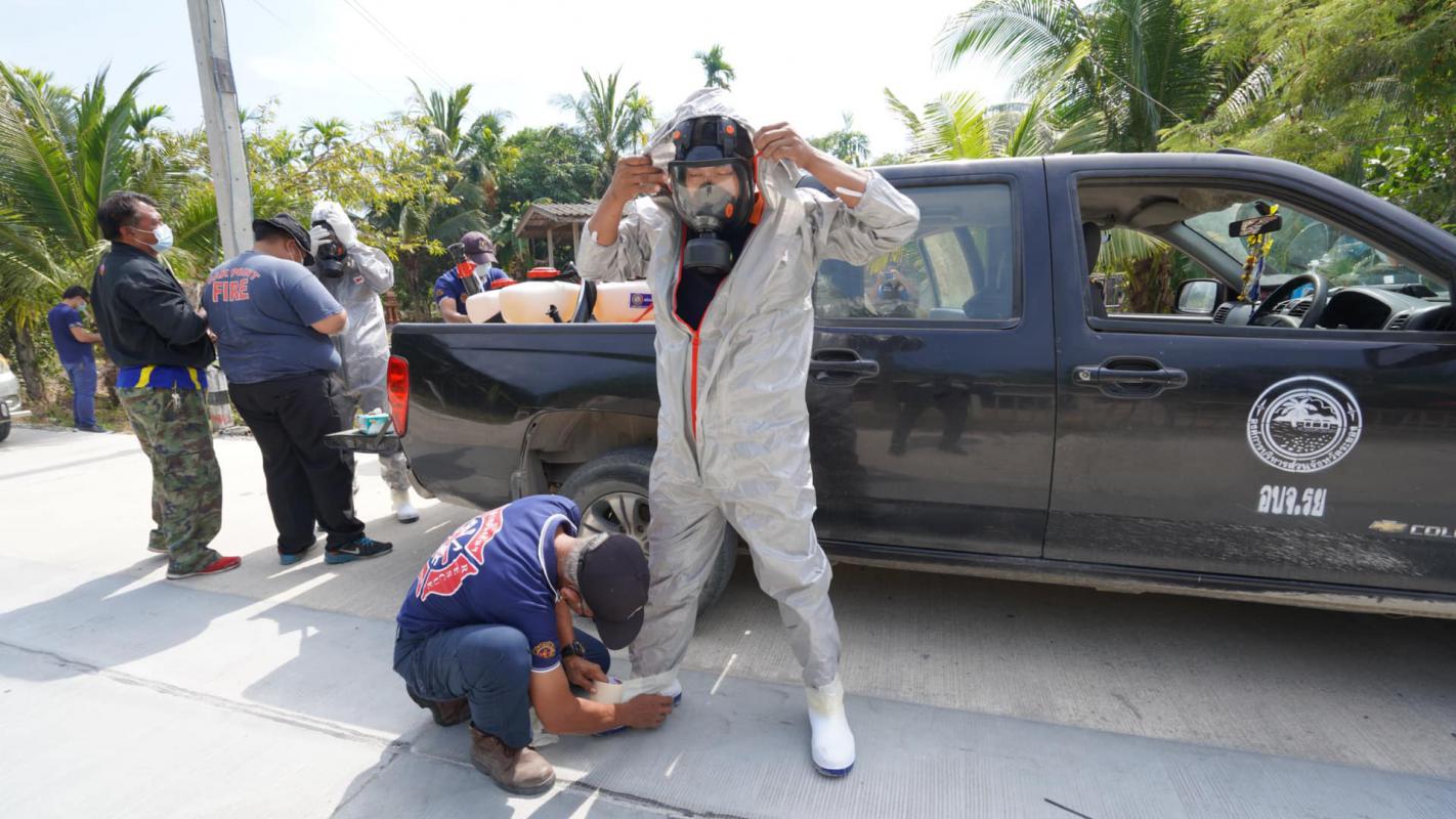 วันที่ 15 มกราคม 2564 องค์การบริหารส่วนจังหวัดระยอง โดยฝ่ายป้องกันและบรรเทาสาธารณภัย กองทรัพยากรธรรมชาติและสิ่งแวดล้อม จัดเจ้าหน้าที่เข้าทำการฉีดพ่นน้ำยาฆ่าเชื้อไวรัส Covid-19 ณ บริเวณ บ้านผู้ติดเชื้อและผู้ที่รอผลการตรวจ พร้อมกับบริเวณโดยรอบ เพื่อป้องกันการแพร่ระบาดของเชื้อไวรัส covid-19 และเพื่อสร้างความมั่นใจให้กับประชาชน โดยสถานที่ดำเนินการฉีดพ่นในวันนี้ ประกอบไปด้วย