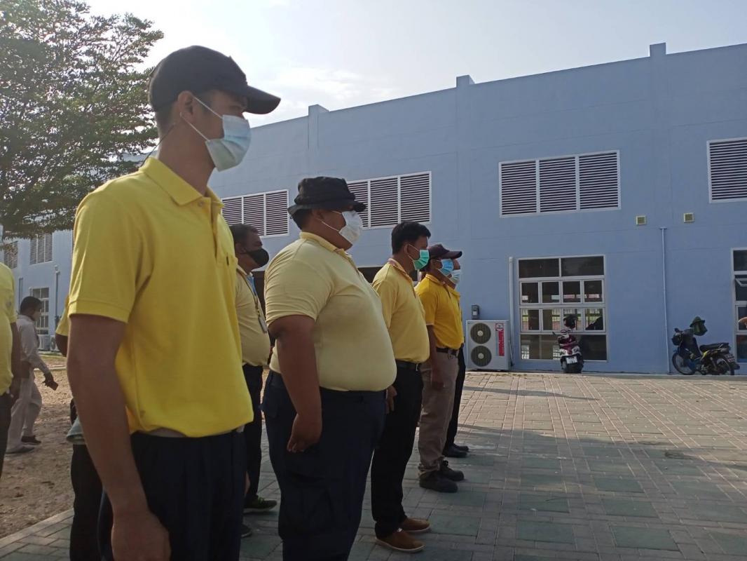 วันที่ 25 มกราคม 2564 ณ สนามกีฬากลางจังหวัดระยอง นายสมศักดิ์ เกตุสาคร รองปลัดอบจ.ระยอง (2) พร้อมด้วย นายเศรษฐา บุตรหนู ผู้อำนวยการกองทรัพยากรธรรมชาติและสิ่งแวดล้อม ร่วมให้โอวาทและให้กำลังใจทีมฉีดพ่นน้ำยาฆ่าเชื้อไวรัส Covid-19 ของอบจ.ระยอง ที่ได้ปฏิบัติหน้าที่ฉีดพ่นน้ำยาฆ่าเชื้อไวรัส Covid-19 เพื่อป้องกันการแพร่ระบาดของเชื้อไวรัส covid-19 และ เพื่อสร้างความมั่นใจให้กับประชาชนในจังหวัดระยอง ณ ศูนย์ทีมปฏิบัติการ COVID-19 อบจ.ระยอง สนามกีฬากลางจังหวัดระยอง