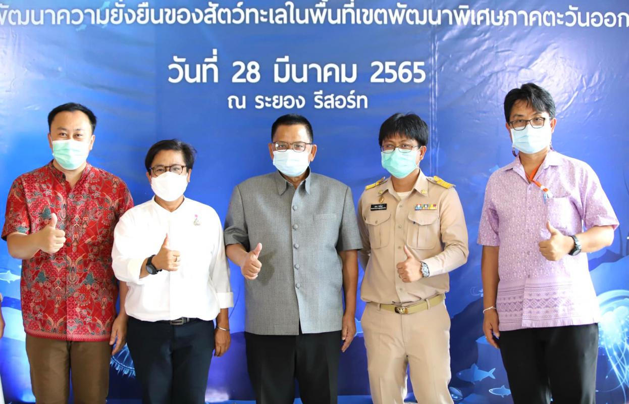 วันที่ 28 มีนาคม 2565 เวลา 17.00 น. ณ ห้องประชุมระยอง แกรนด์บอลรูม โรงแรมระยองรีสอร์ท ต.เพ อ.เมืองระยอง จ.ระยอง EEC ร่วมกับ อบจ.ระยอง กรมประมง และ ททท. ลงนามบันทึกข้อตกลงความร่วมมือ (MOU) เรื่อง การพัฒนาความยั่งยืนของสัตว์ทะเลในพื้นที่เขตพัฒนาพิเศษ โดยมี ดร. สาธิต ปิตุเตชะ รัฐมนตรีช่วยว่าการกระทรวงสาธารณสุข เป็นประธานในพิธีลงนามบันทึกข้อตกลงความร่วมมือ (MOU) มีดร. คณิศ แสงสุพรรณ เลขาธิการคณะกรรมการนโยบายเขตพัฒนาพิเศษภาคตะวันออก นายปิยะ ปิตุเตชะ นายกองค์การบริหารส่วนจังหวัดระยอง นายเฉลิมชัย สุวรรณรักษ์ อธิบดีกรมประมง นายชาญนะ เอี่ยมแสง ผู้ว่าราชการจังหวัดระยอง นางปราณี จั่นนพรัตน์ รองผู้อำนวยการภูมิภาคภาคตะวันออก การท่องเที่ยวแห่งประเทศไทย นางสุวรรณา โดตี้ ประธานสภาอุตสาหกรรมท่องเที่ยวระยอง และหน่วยงานที่เกี่ยวข้องเข้าร่วมพิธีอย่างพร้อมเพรียง