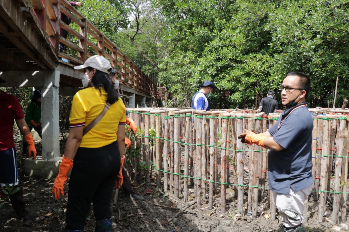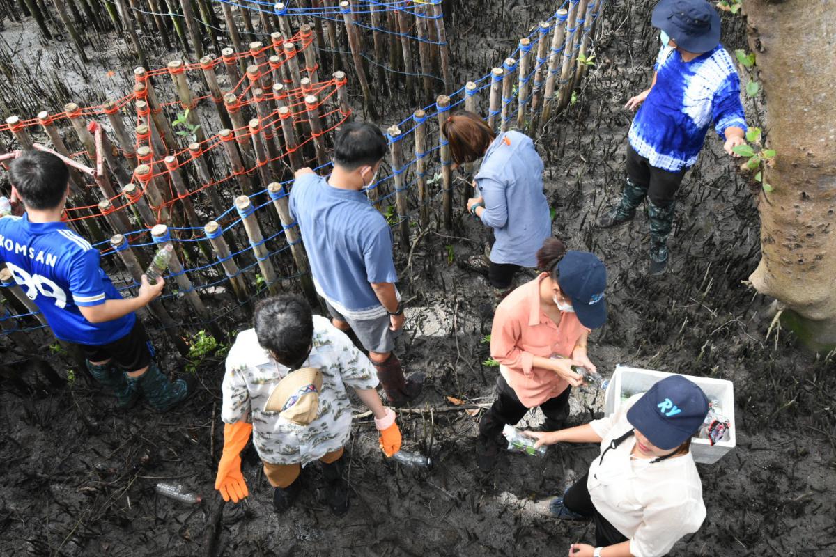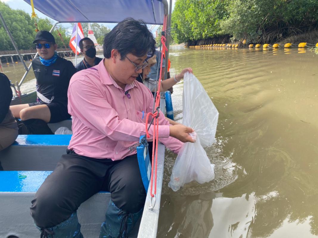 โครงการอนุรักษ์พันธุ์สัตว์น้ำในระบบนิเวศป่าชายเลน โดยได้ดำเนินการจัดกิจกรรม สร้างคอนโดปู จำนวน 2 ชุด ปล่อยพันธุ์ปลากะพงขาว จำนวน 1,000 ตัว ปล่อยพันธุ์ปูแสม จำนวน 200 ตัว มีจำนวนผู้เข้าร่วมโครงการทั้งสิ้น 50 คน ดังนี้ อาสาสมัครท้องถิ่นรักษ์โลก จำนวน 11 คน กลุ่มอนุรักษ์ฟื้นฟูแม่น้ำระยองและป่าชายเลน จำนวน 5 คน เจ้าหน้าที่สำนักงานทรัพยากรทางทะเลและชายฝั่งที่ 1 จำนวน 14 คน และเจ้าหน้าที่องค์การบริหารส่วนจังหวัดระยอง จำนวน 20 คน เมื่อวันที่ 30 มิถุนายน 2565 เวลา 09.00 น. ณ บริเวณป่าชายเลนพระเจดีย์กลางน้ำ อำเภอเมืองระยอง จังหวัดระยอง