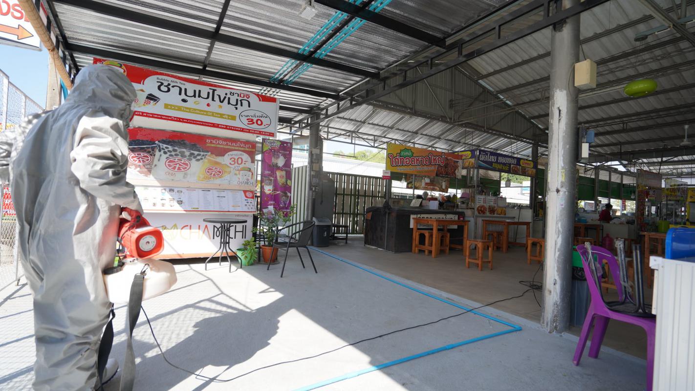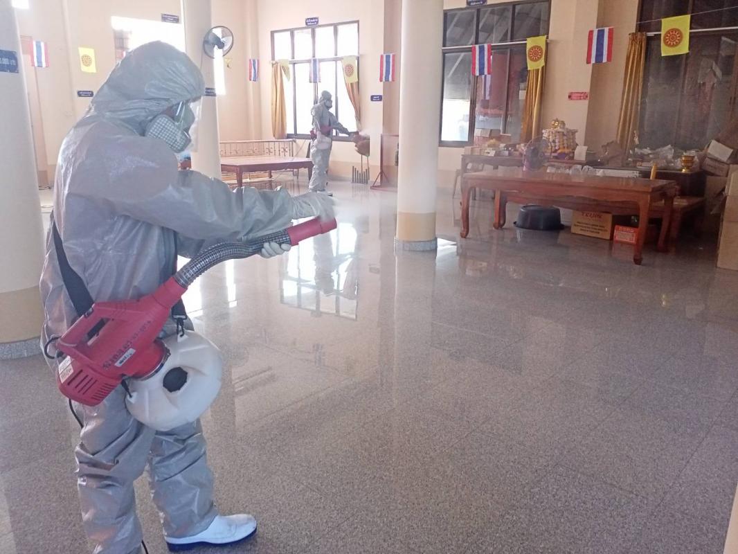องค์การบริหารส่วนจังหวัดระยองจัดเจ้าหน้าที่เข้าทำการฉีดพ่นน้ำยาฆ่าเชื้อไวรัส Covid-19