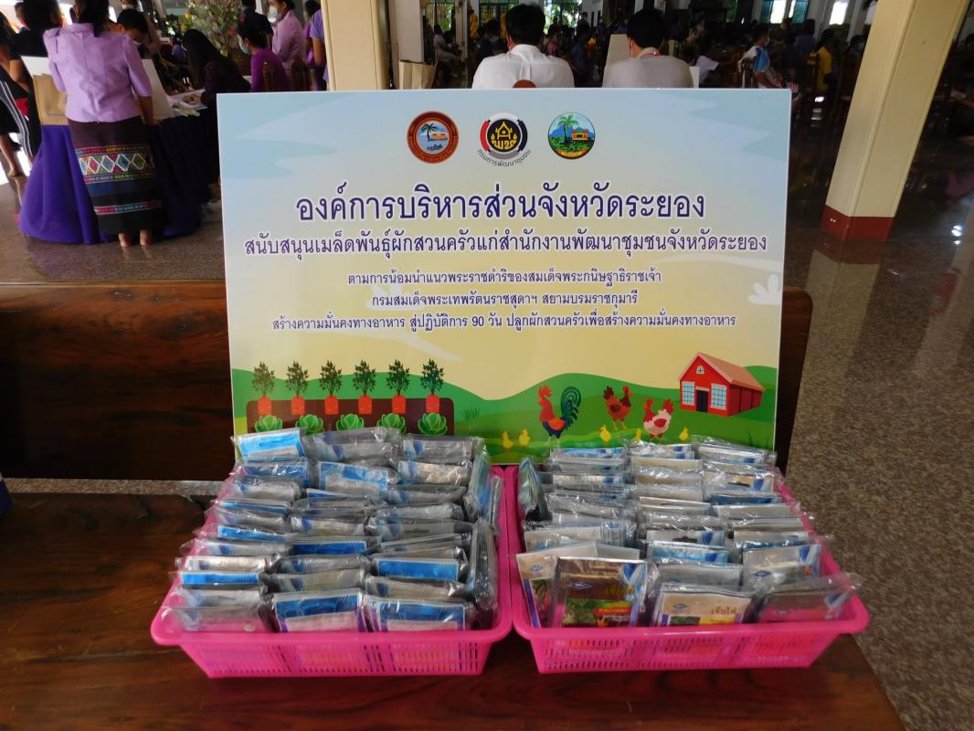 วันที่ 30 มีนาคม 2564 องค์การบริหารส่วนจังหวัดระยอง โดยนายอรุณ วิชกิจ ผู้เชี่ยวชาญด้านการวางแผนและวิเคราะห์นโยบาย พร้อมด้วยนายสมบัติ มุมทอง หัวหน้าสำนักปลัดองค์การบริหารส่วนจังหวัด ได้มอบเมล็ดพันธุ์ผักสวนครัว จำนวน 1,840 ซอง แก่สำนักงานพัฒนาชุมชนจังหวัดระยอง ในการต่อยอดโครงการปลูกผักสวนครัว เพื่อสร้างความมั่นคงทางอาหารให้มีความยั่งยืน ตามการน้อมนำแนวพระราชดำริของสมเด็จพระกนิษฐาธิราชเจ้า กรมสมเด็จพระเทพรัตนราชสุดาฯ สยามบรมราชกุมารี สร้างความมั่นคงทางอาหารสู่ปฏิบัติการ 90 วัน ปลูกพืชผักสวนครัวเพื่อสร้างความมั่นคงทางอาหาร รอบ 2 เพื่อนำไปแจกจ่ายให้กับครัวเรือนยากจน/ด้อยโอกาส และผู้ได้รับผลกระทบจากการแพร่ระบาดของโรคติดเชื้อไวรัสโคโรนา 2019 (COVID – 19) ให้มีความมั่นคงทางอาหาร ด้วยการปลูกพืชผักไว้รับประทานในครัวเรือน ณ วัดเนินพระ ตำบลเนินพระ อำเภอเมืองระยอง จังหวัดระยอง
