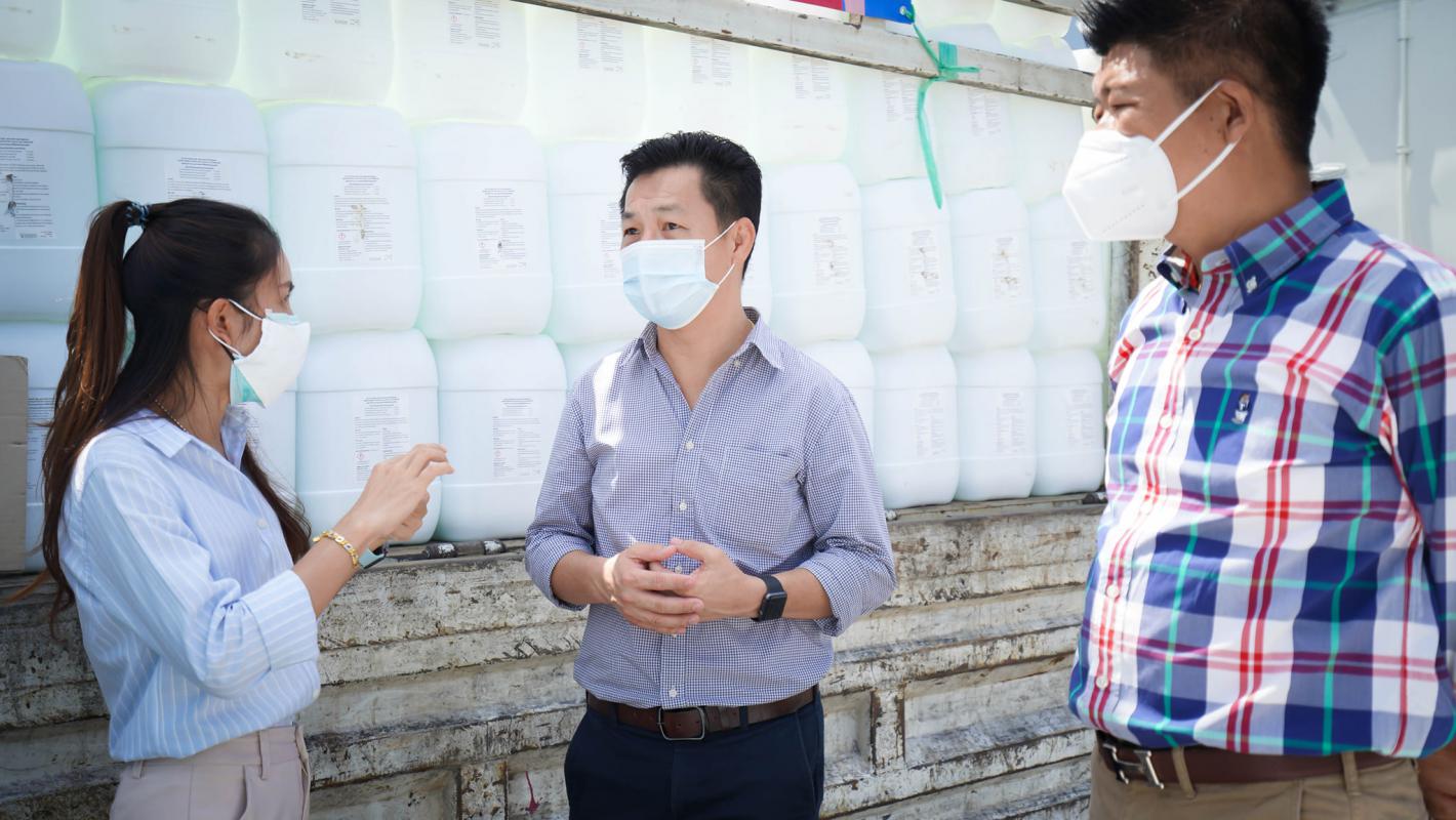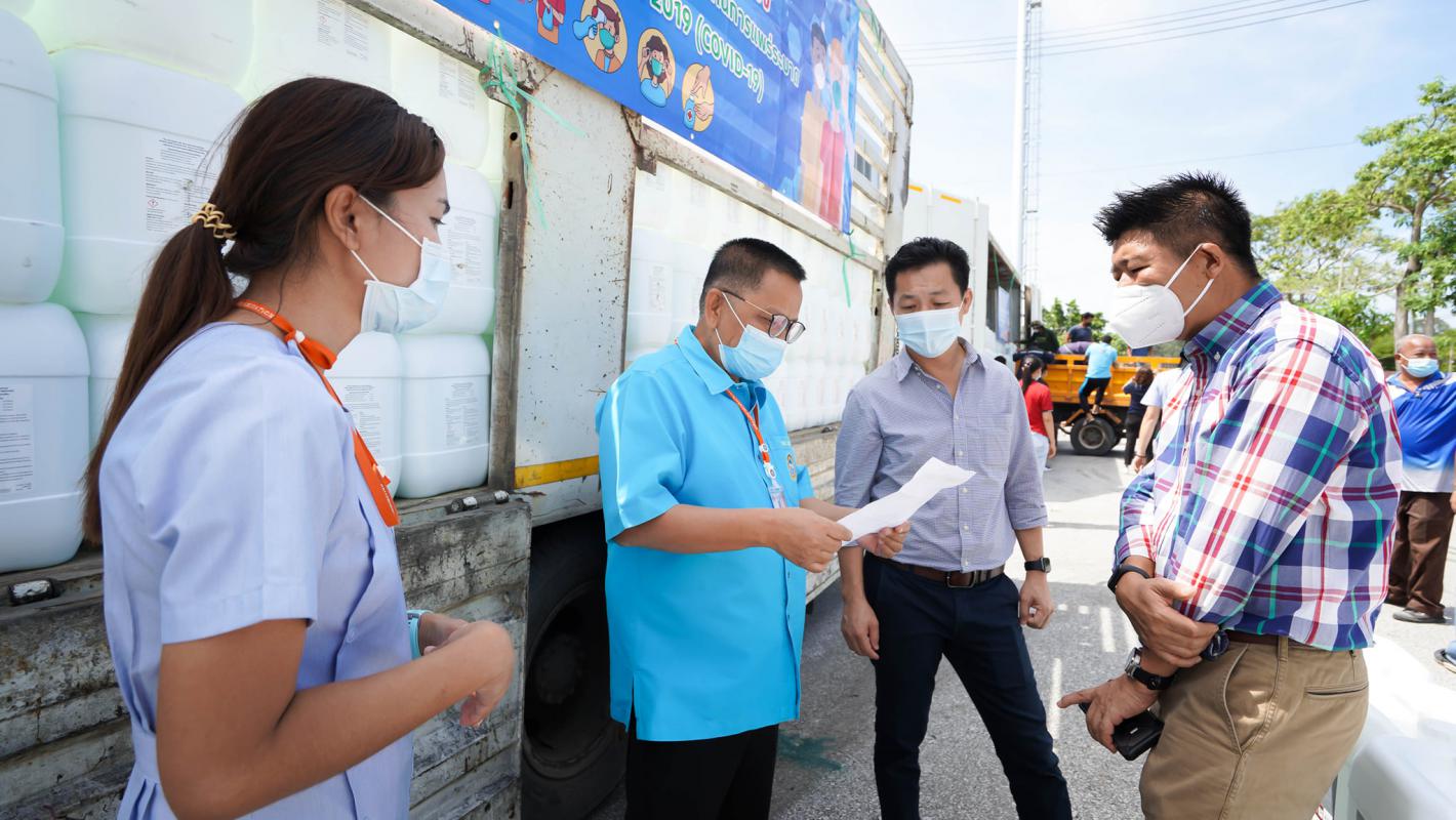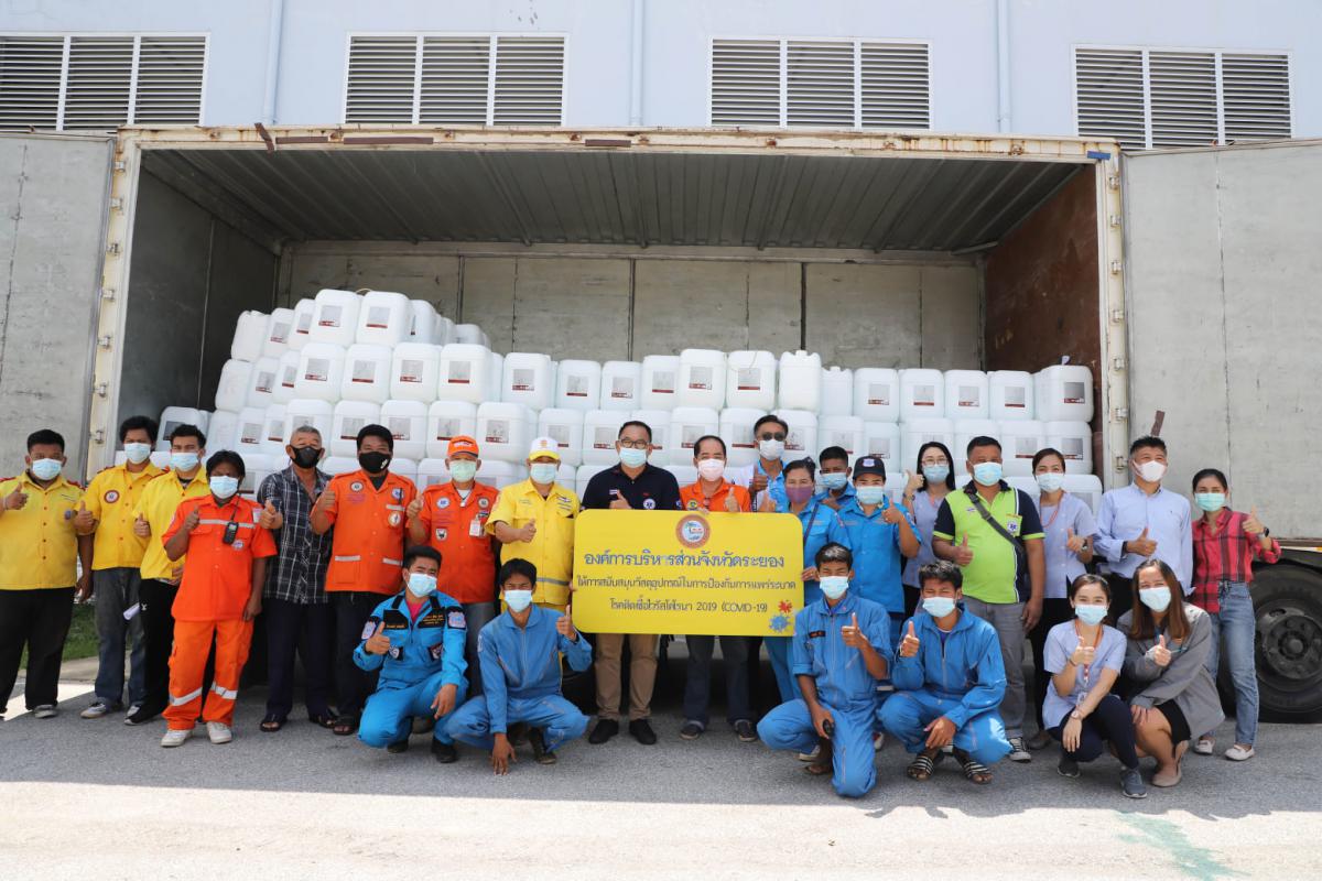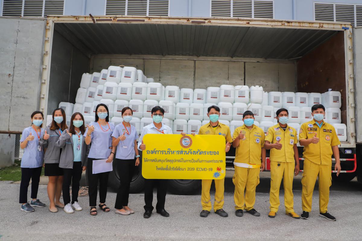 อบจ.ระยอง สนับสนุนน้ำยาฆ่าเชื้อและเจลแอลกอฮอล์ ให้ อปท.และมูลนิธิกู้ภัยในจังหวัดระยอง
