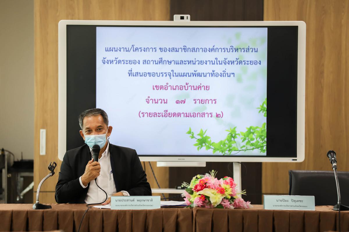 วันที่ 2 มิถุนายน 2564 เวลา 14.00 น. กองยุทธศาสตร์และงบประมาณองค์การบริหารส่วนจังหวัดระยอง ดำเนินการจัดทำโครงการแผนพัฒนาท้องถิ่นขององค์การบริหารส่วนจังหวัดระยอง (พ.ศ. 2561 - 2565) (เพิ่ม ฉบับที่ 5) ครั้งที่ 2/2564 (อำเภอบ้านค่าย) โดยมี นายปิยะ ปิตุเตชะ นายกองค์การบริหารส่วนจังหวัดระยอง นายประสานต์ พฤกษาชาติ รองนายกองค์การบริหารส่วนจังหวัดระยอง (2) นายมนตรี ชนะชัยวิบูลวัฒน์ ที่ปรึกษานายกอบจ.ระยอง นายอรุณ วิชกิจ ผู้เชี่ยวพิเศษด้านการวางแผนและวิเคราะห์นโยบาย เข้าร่วมพิธีเปิดโครงการ พร้อมด้วย สมาชิกสภาองค์การบริหารส่วนจังหวัดระยอง หัวหน้าส่วนราชการ ผู้อำนวยการกอง องค์กรปกครองส่วนท้องถิ่นในเขตพื้นที่อำเภอบ้านค่าย เข้าร่วมงานอย่างพร้อมเพรียง ณ ห้องประชุม 3 ชั้น 3 อบจ.ระยอง