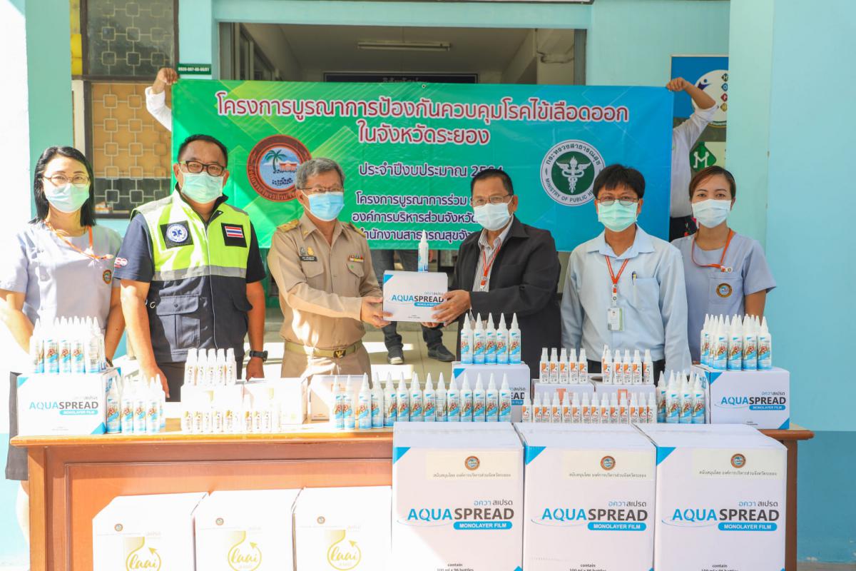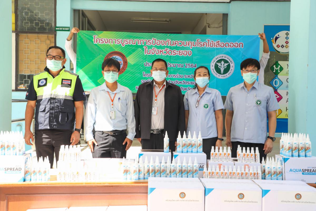 กองสาธารณสุข อบจ.ระยอง จัดโครงการป้องกันควบคุมโรคไข้เลือดออก ประจำปีงบประมาณ 2564 โดยมอบสเปรย์ไล่ยุงอนุภาคนาโนที่กักเก็บอิคาริดิน จำนวน 50,000 ขวด และผลิตภัณฑ์กำจัดลูกน้ำและตัวโม่งยุงลายชนิดฟิล์มโมเลกุลเดี่ยว จำนวน 16,570 ขวด ให้กับ สำนักงานสาธารณสุขจังหวัดระยอง และโรงเรียนในสังกัด อบจ.ระยอง ในวันที่ 4 มิถุนายน 2564 ณ สำนักงานสาธารณสุขจังหวัดระยอง โดยมีนายสมศักดิ์ เกตุสาคร รองปลัด อบจ.ระยอง , นายสุริยะ ศิริวัฒน์ รักษาการ ผอ.กองสาธารณสุข นายไพฑูรย์ รัตนพรวารีสกุล สอบจ.อำเภอเมืองระยอง เขต 7 เป็นตัวแทนในการส่งมอบดังกล่าว จังหวัดระยองเป็นจังหวัดที่พบผู้ป่วยโรคไข้เลือดออกเป็นอันดับต้นๆ ของประเทศไทย ดังนั้น อบจ.ระยอง จึงต้องเร่งดำเนินการป้องกันเพื่อไม่ให้เกิดการระบาดของโรคไข้เลือดออก ซึ่งจะส่งผลกระทบต่อปัญหาสุขภาพของประชาชนโดยตรง และพบว่าการระบาดของโรคจะสูงขึ้นในช่วงฤดูฝนของทุกปี