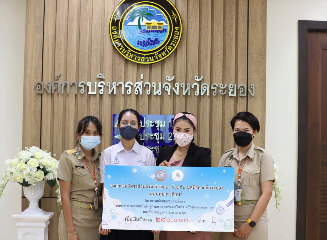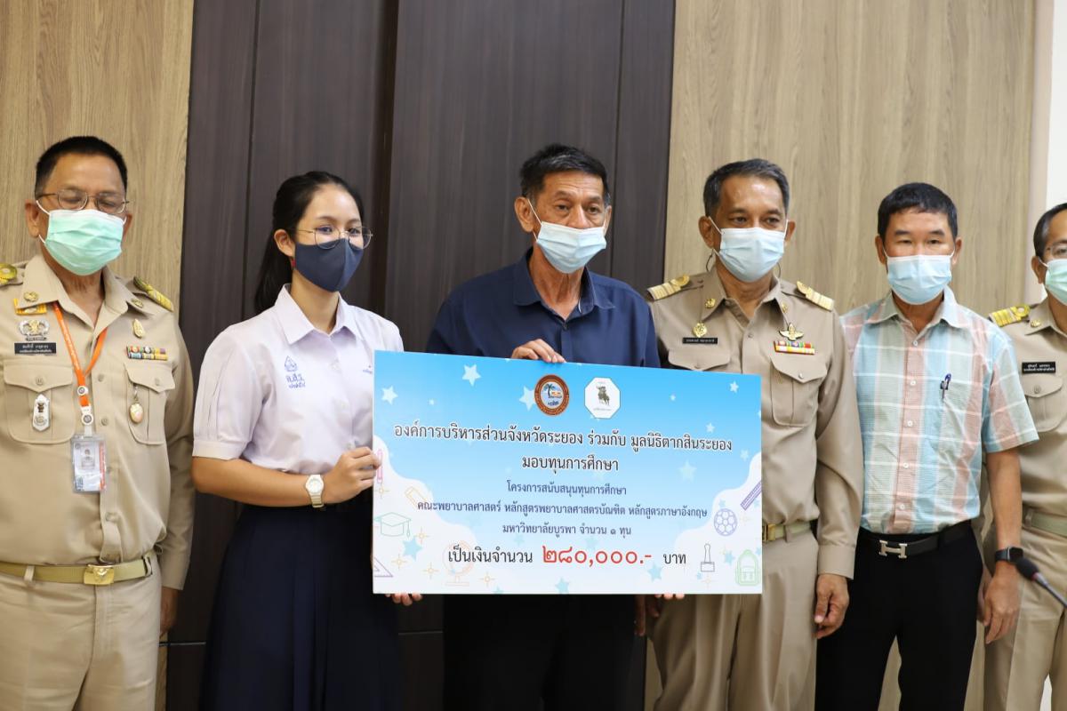 วันที่ 8 กรกฎาคม 2564 เวลา 10.00 น. ณ ห้องประชุม 2 ชั้น 3 องค์การบริหารส่วนจังหวัดระยอง ร่วมกับมูลนิธิตากสินระยอง มอบทุนการศึกษาตามโครงการสนับสนุนทุนการศึกษา คณะพยาบาลศาสตร์ หลักสูตรพยาบาลศาสตรบัณฑิต หลักสูตรภาษาอังกฤษ มหาวิทยาลัยบูรพา จำนวน 1 ทุน เป็นจำนวนเงิน 280,000 บาท โดยมี นายปิยะ ปิตุเตชะ นายกองค์การบริหารส่วนจังหวัดระยอง พร้อมคณะผู้บริหาร หัวหน้าส่วนราชการ ผู้อำนวยการกอง และผู้อำนวยการมูลนิธิตากสินระยอง ร่วมมอบทุนการศึกษา ให้กับ นางสาวอรกัญญา สกุลเชื้อ นักเรียนโรงเรียนมัธยมตากสินระยอง โดยในอนาคตหลังจากสำเร็จการศึกษาก็จะได้นำความรู้ที่ได้รับกลับมาทำงานเพื่อสร้างประโยชน์ให้กับจังหวัดระยองต่อไป