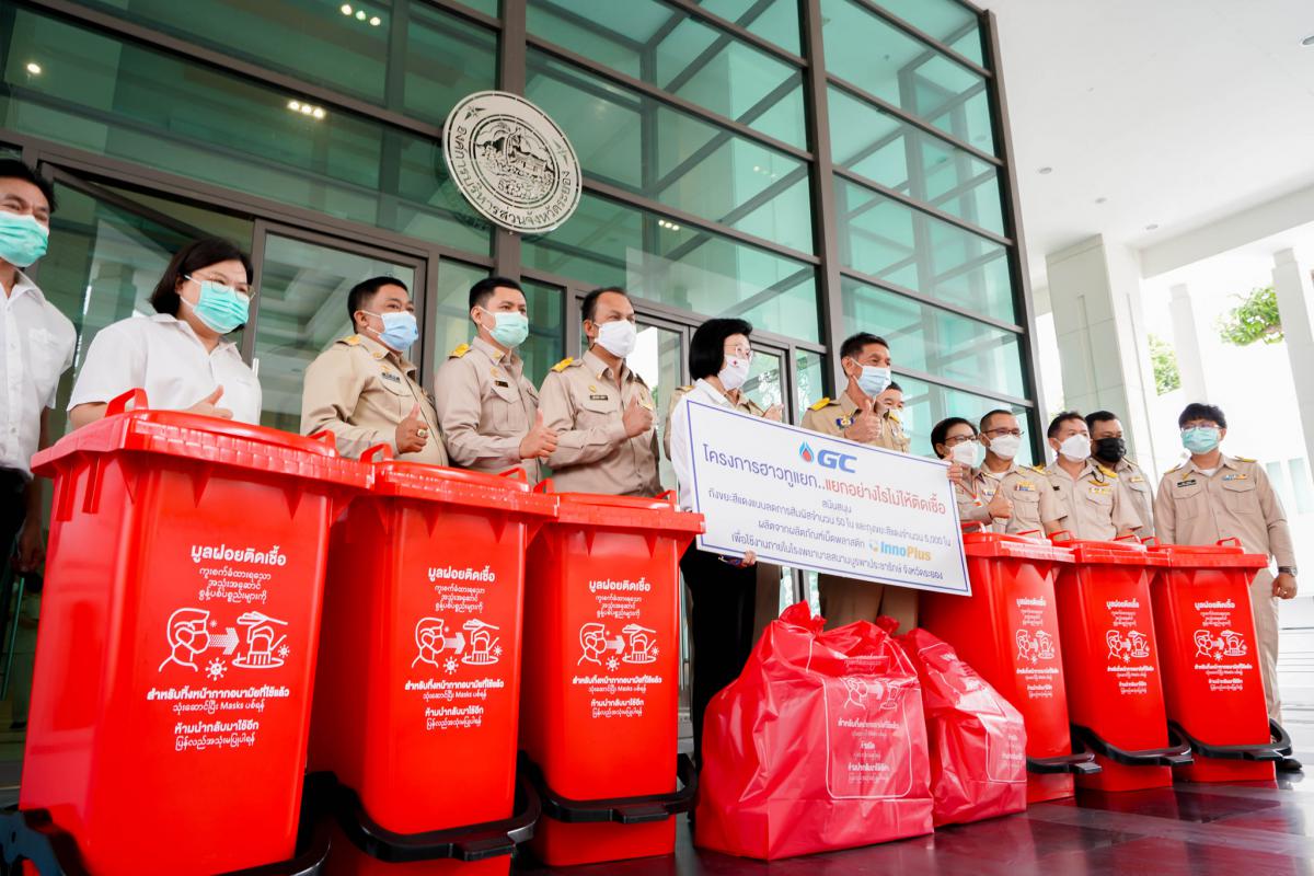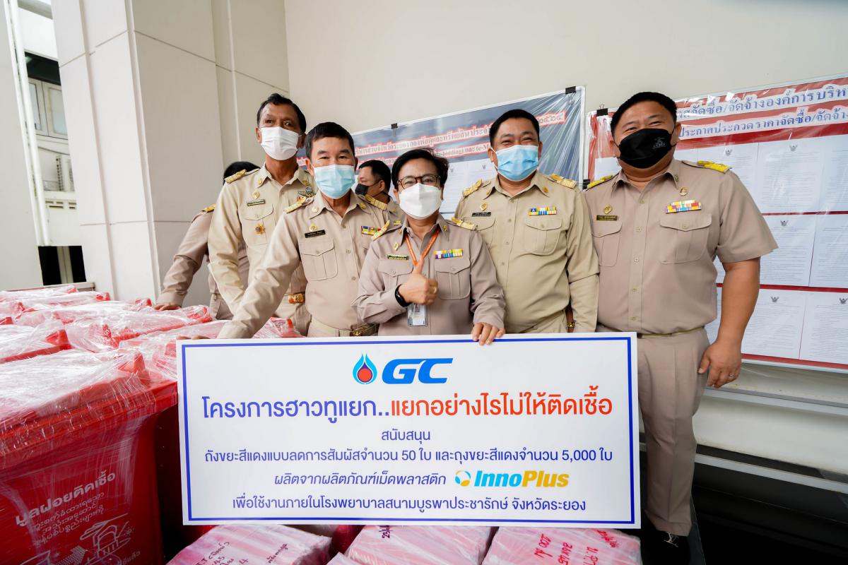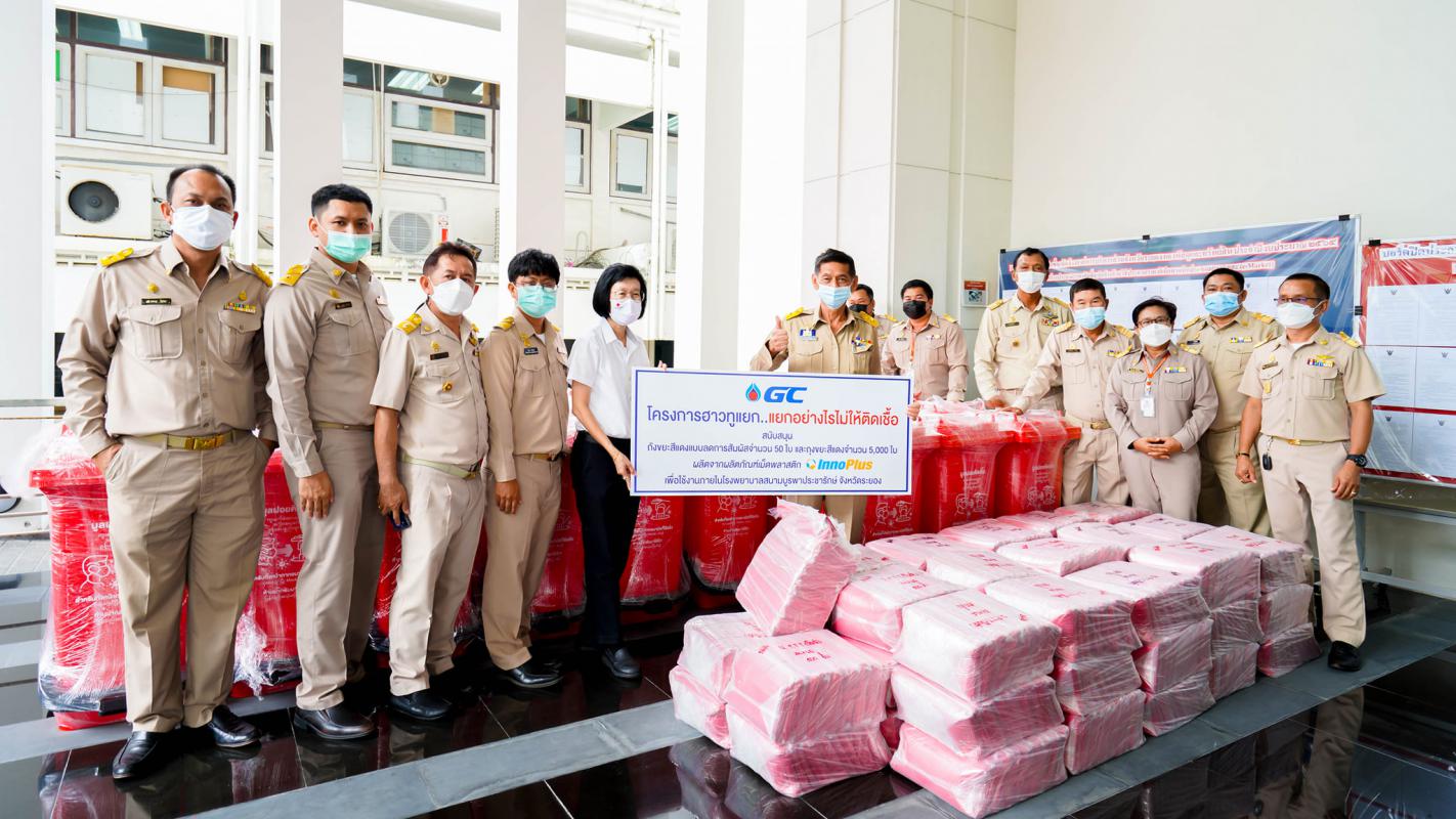 วันที่ 8 กรกฎาคม 2564 เวลา 13.30 น. ณ อบจ.ระยอง นายปิยะ ปิตุเตชะ นายกองค์การบริหารส่วนจังหวัดระยอง พร้อมด้วย คณะผู้บริหาร สมาชิกสภาองค์การบริหารส่วนจังหวัดระยอง เข้ารับมอบถุงแดงและถังแดงจากบริษัท พีทีที โกลบอล เคมิคอล จำกัด (มหาชน) โดยคุณเชาวนี พันธุ์พฤกษ์ ผู้จัดการฝ่ายหน่วยงานบริหารกิจการเพื่อสังคม เป็นผู้ส่งมอบ ซึ่งบริษัท พีทีที โกลบอล เคมิคอล จำกัด (มหาชน) ได้ดำเนิน“โครงการฮาวทูแยก..แยกอย่างไรไม่ให้ติดเชื้อ”และอุปกรณ์ป้องกันโควิด-19 เพื่อใช้ในโรงพยาบาลสนาม ให้เกิดการคัดแยกและทิ้งขยะติดเชื้อ อย่างถูกวิธี ไม่ให้เกิดการปนเปื้อนและแพร่เชื้อได้อีก ประกอบไปด้วย ถุงขยะสีแดง จำนวน 5,000 ถุง ผลิตจากเม็ดพลาสติกคุณภาพสูง Inno Plus ทนทาน แข็งแรง เหนียว ป้องกันความชื้น ได้รับการรับรองฉลากคาร์บอน แสดงให้เห็นถึงความเป็นมิตรต่อสิ่งแวดล้อม ของเม็ดพลาสติก ปลอดภัยต่อการจัดเก็บขยะ และ ถังขยะสีแดงขนาด 120 ลิตร จำนวน 50 ใบ แบบลดการสัมผัส ด้วยการใช้เท้าเหยียบในการเปิดตัวถัง ด้านบนถุงและถังมีการสื่อสาร อย่างชัดเจนเพื่อช่วยให้เกิดการคัดแยกที่ง่ายและสะดวกขึ้น