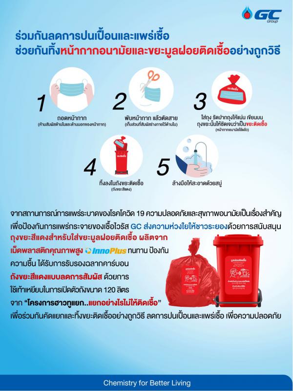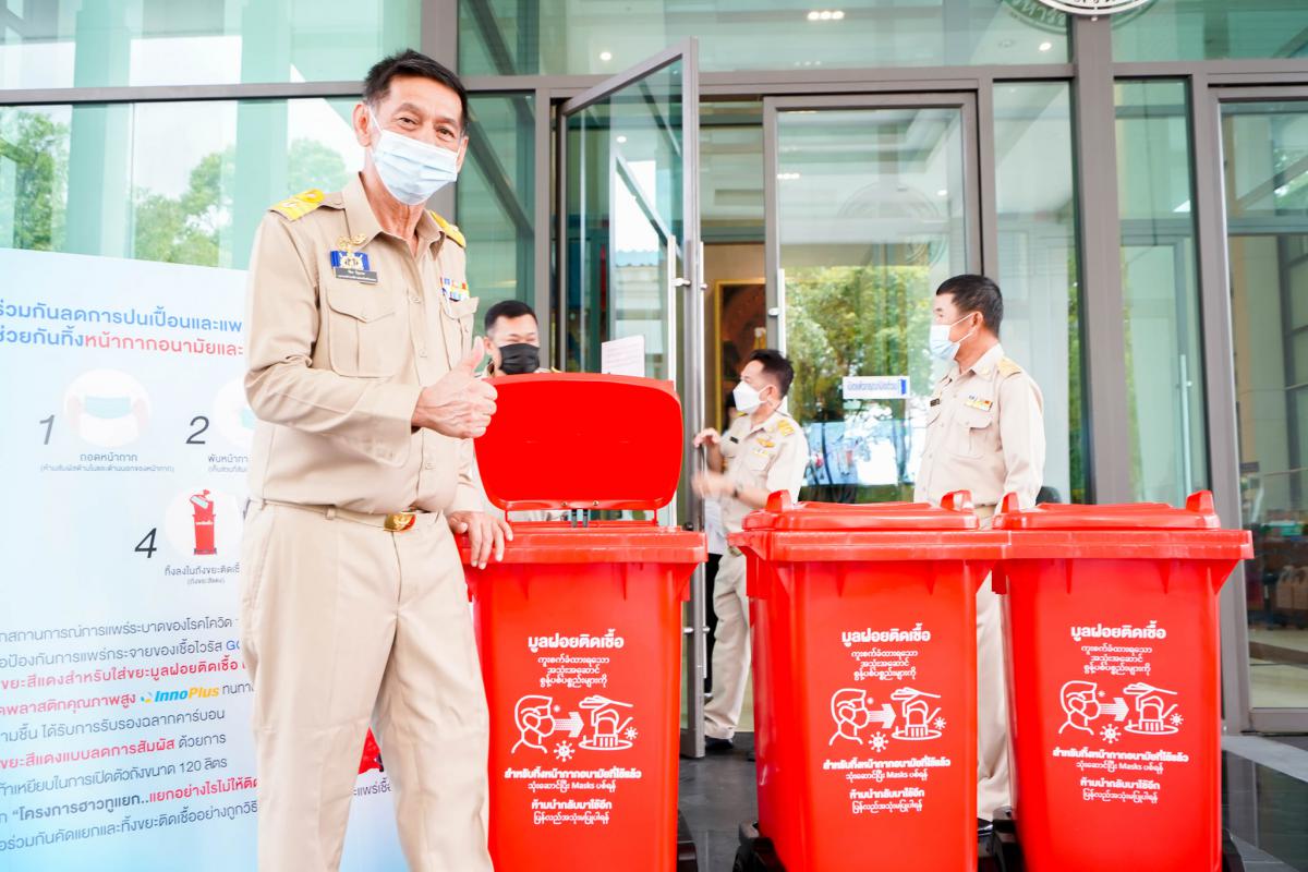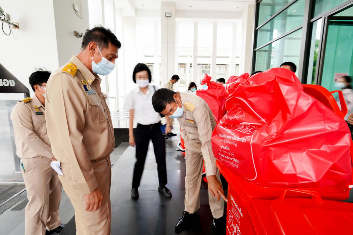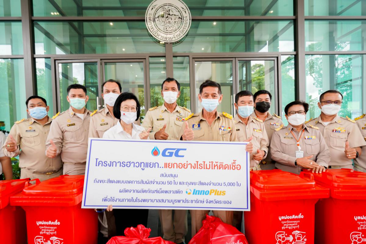 วันที่ 8 กรกฎาคม 2564 เวลา 13.30 น. ณ อบจ.ระยอง นายปิยะ ปิตุเตชะ นายกองค์การบริหารส่วนจังหวัดระยอง พร้อมด้วย คณะผู้บริหาร สมาชิกสภาองค์การบริหารส่วนจังหวัดระยอง เข้ารับมอบถุงแดงและถังแดงจากบริษัท พีทีที โกลบอล เคมิคอล จำกัด (มหาชน) โดยคุณเชาวนี พันธุ์พฤกษ์ ผู้จัดการฝ่ายหน่วยงานบริหารกิจการเพื่อสังคม เป็นผู้ส่งมอบ ซึ่งบริษัท พีทีที โกลบอล เคมิคอล จำกัด (มหาชน) ได้ดำเนิน“โครงการฮาวทูแยก..แยกอย่างไรไม่ให้ติดเชื้อ”และอุปกรณ์ป้องกันโควิด-19 เพื่อใช้ในโรงพยาบาลสนาม ให้เกิดการคัดแยกและทิ้งขยะติดเชื้อ อย่างถูกวิธี ไม่ให้เกิดการปนเปื้อนและแพร่เชื้อได้อีก ประกอบไปด้วย ถุงขยะสีแดง จำนวน 5,000 ถุง ผลิตจากเม็ดพลาสติกคุณภาพสูง Inno Plus ทนทาน แข็งแรง เหนียว ป้องกันความชื้น ได้รับการรับรองฉลากคาร์บอน แสดงให้เห็นถึงความเป็นมิตรต่อสิ่งแวดล้อม ของเม็ดพลาสติก ปลอดภัยต่อการจัดเก็บขยะ และ ถังขยะสีแดงขนาด 120 ลิตร จำนวน 50 ใบ แบบลดการสัมผัส ด้วยการใช้เท้าเหยียบในการเปิดตัวถัง ด้านบนถุงและถังมีการสื่อสาร อย่างชัดเจนเพื่อช่วยให้เกิดการคัดแยกที่ง่ายและสะดวกขึ้น