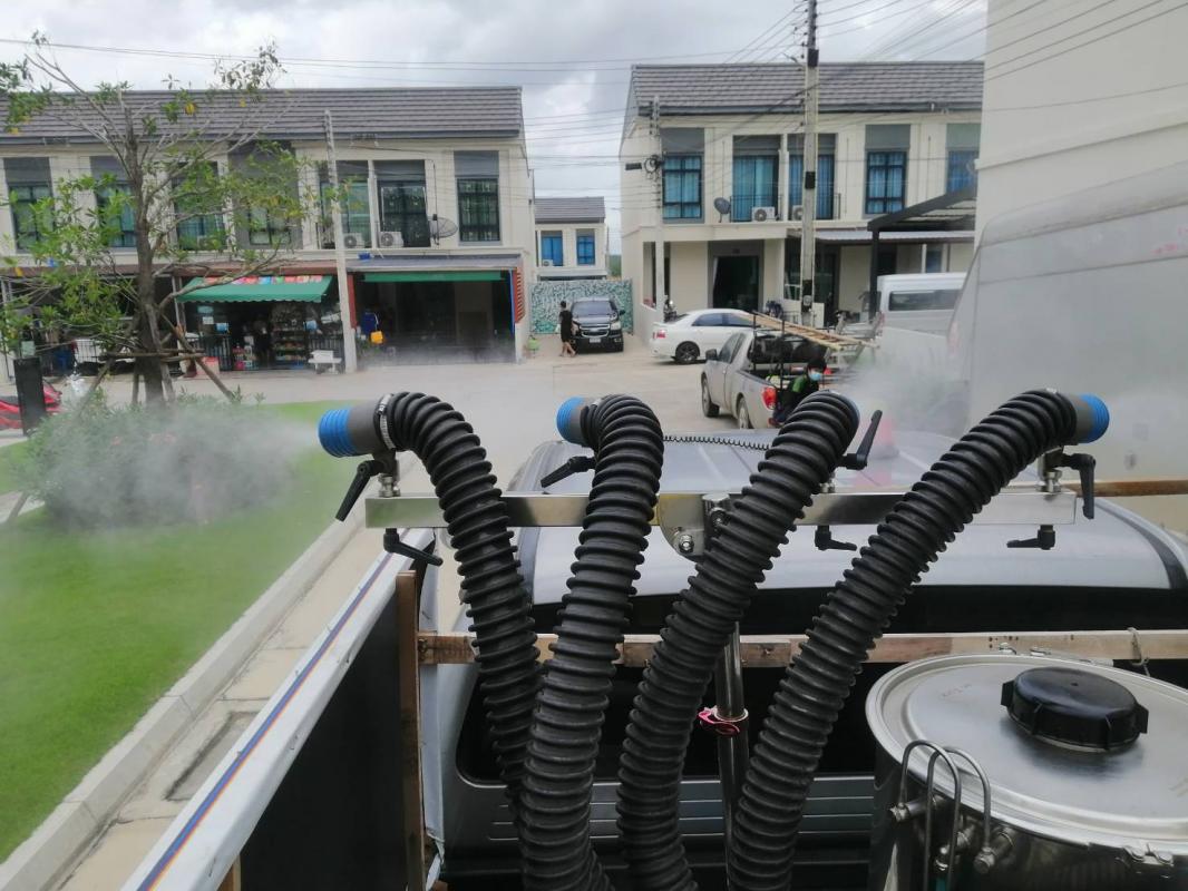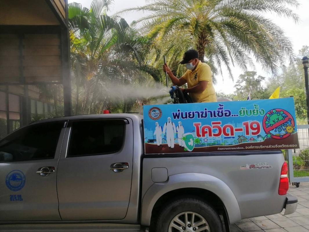 ฝ่ายป้องกันและบรรเทาสาธารณภัย อบจ.ระยอง เร่งออกพ่นน้ำยาฆ่าเชื้อ บริเวณบ้านผู้ร้องขอให้ไปพ่นในเขตนิคมพัฒนา