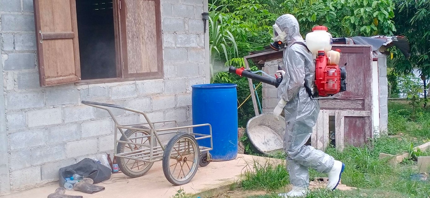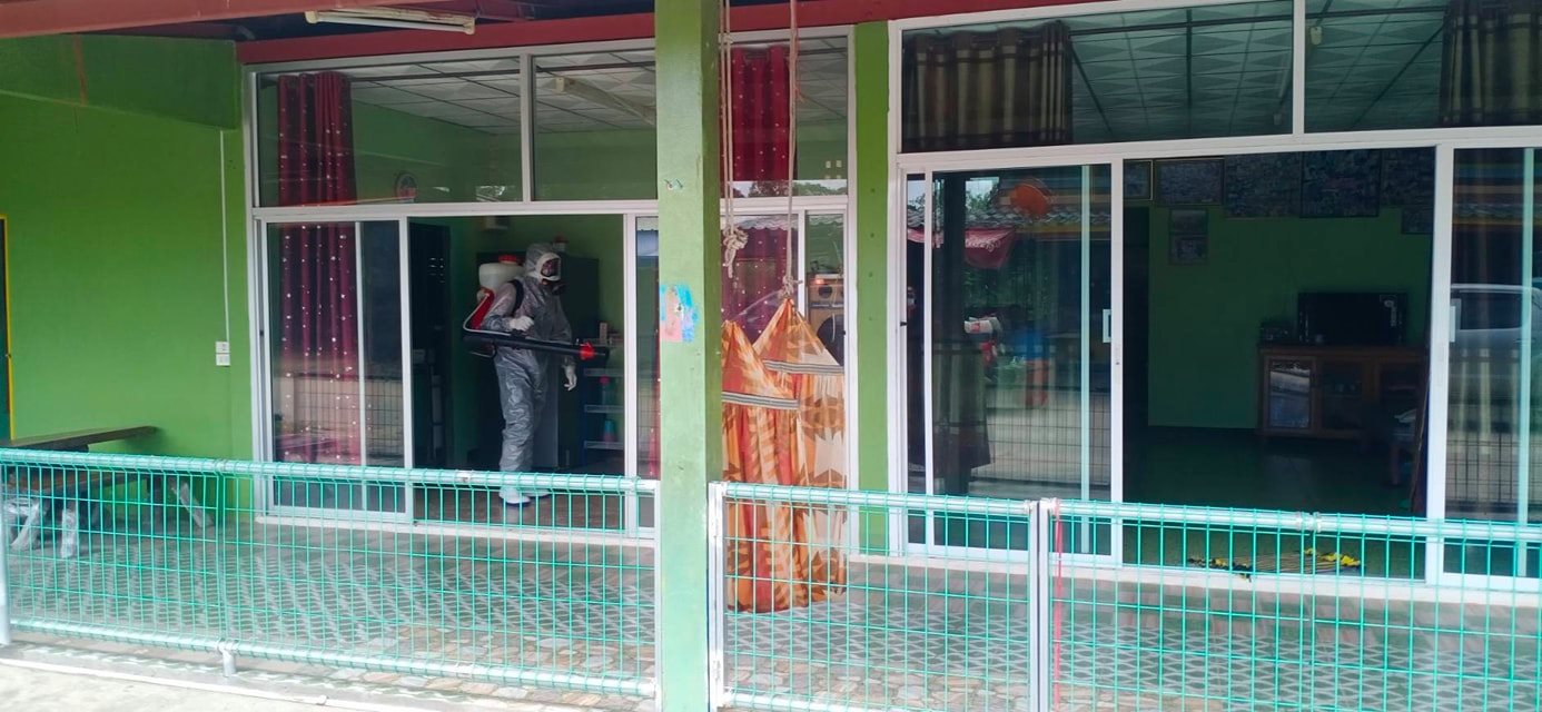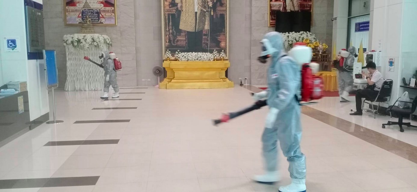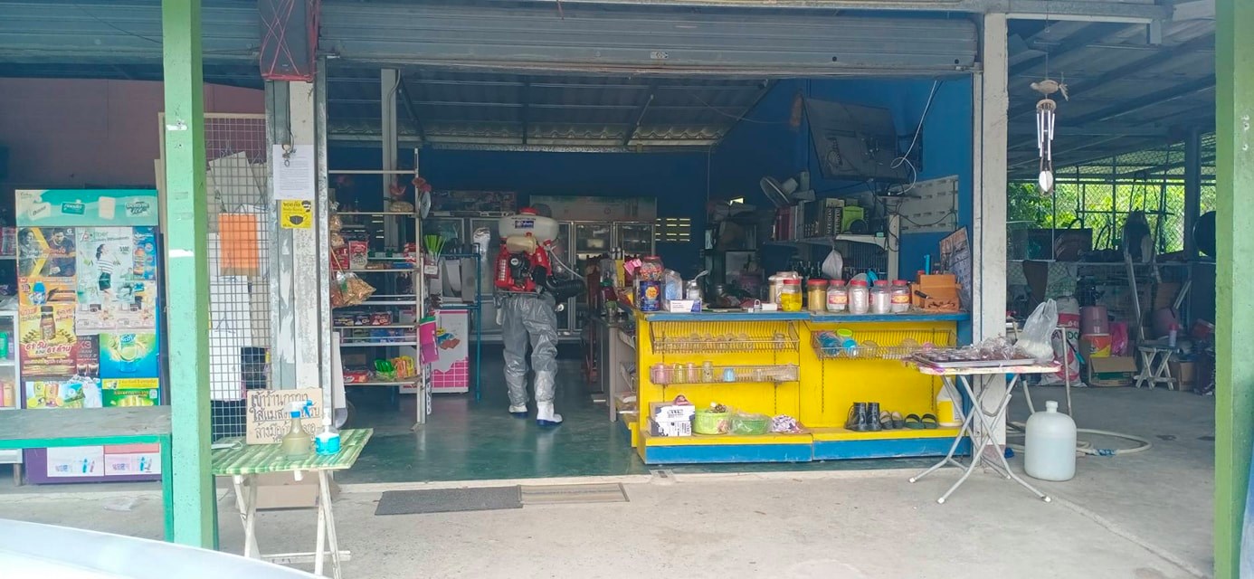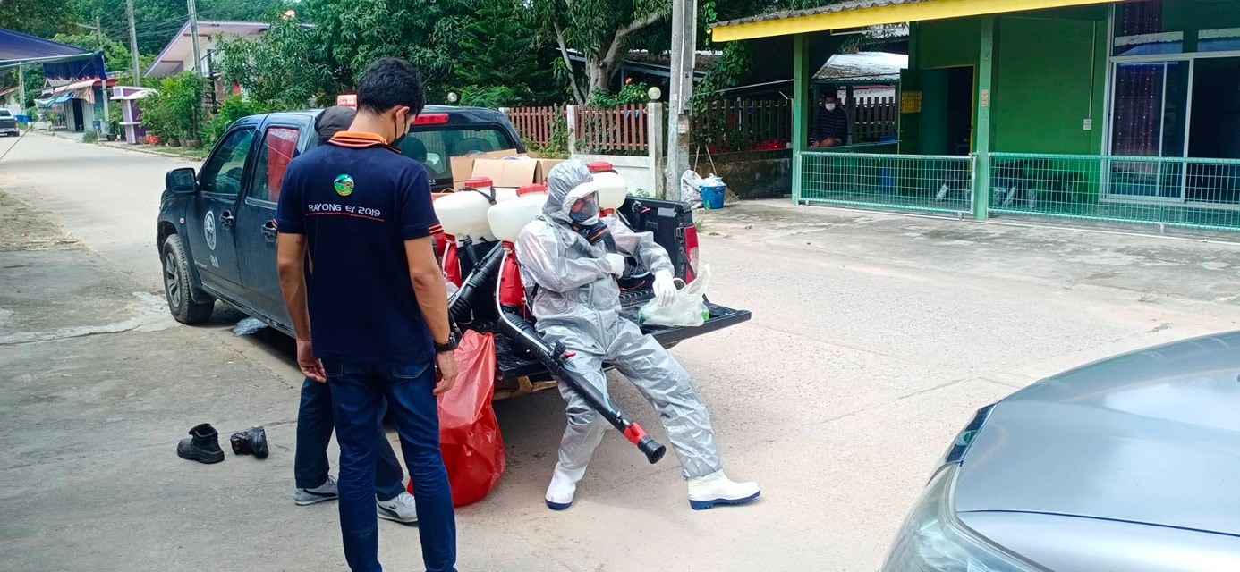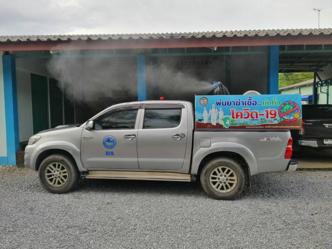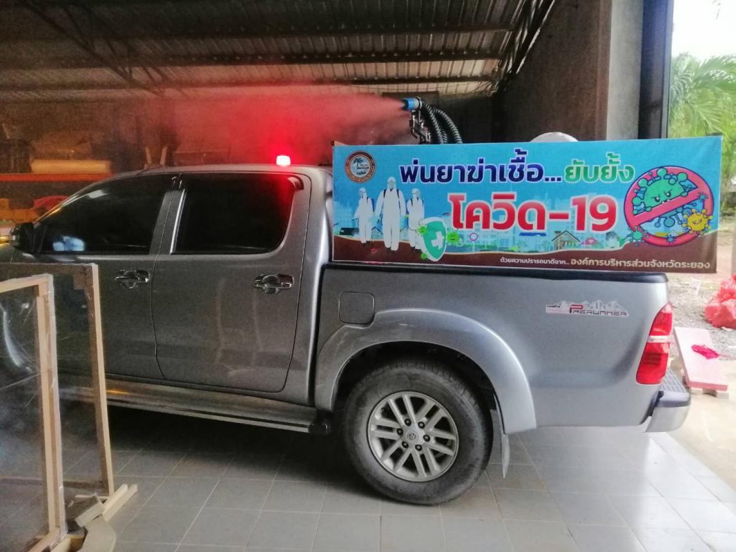 ฉีดพ่นน้ำยาฆ่าเชื้อ โควิด-19 โดยฝ่ายป้องกันและบรรเทาสาธารณภัย อบจ.ระยอง