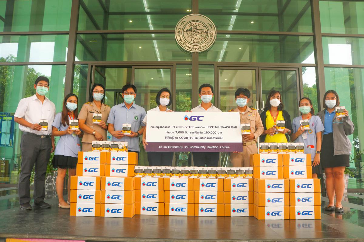 วันที่ 2 ส.ค. 64 เวลา 15.30 น. อบจ.ระยอง รับมอบ ผลิตภัณฑ์ Rice me snack ban จำนวน 7,600 ชิ้น เป็นเงิน 190,000 บาท จากบริษัท พีทีที โกลบอล เคมิคอล จำกัด (มหาชน) โดยมีนายกิตติ เกียรติ์มนตรี รองนายกองค์การบริหารส่วนจังหวัดระยอง, นายวันชัย นนทกิจไพศาล หัวหน้ากลุ่มงานคุ้มครองผู้บริโภคและเภสัชสาธารณสุข สาธารณสุขจังหวัดระยอง และนายสุริยะ ศิริวัฒน์ รักษาการ ผอ.กองสาธารณสุข ร่วมเป็นตัวแทนในการรับมอบดังกล่าว ซึ่งจะส่งมอบให้กับผู้ติดเชื้อที่เข้ารับการรักษาตัวที่ โรงพยาบาลสนาม 3 แห่ง ได้แก่ โรงพยาบาลสนามกีฬากลางจังหวัดระยอง โรงพยาบาลสนามโรงเรียนอนุบาลนานาชาติตากสินบ้านค่าย(หวายกรอง) โรงพยาบาลสนามวัดละหารไร่ และบุคลากรทางการแพทย์