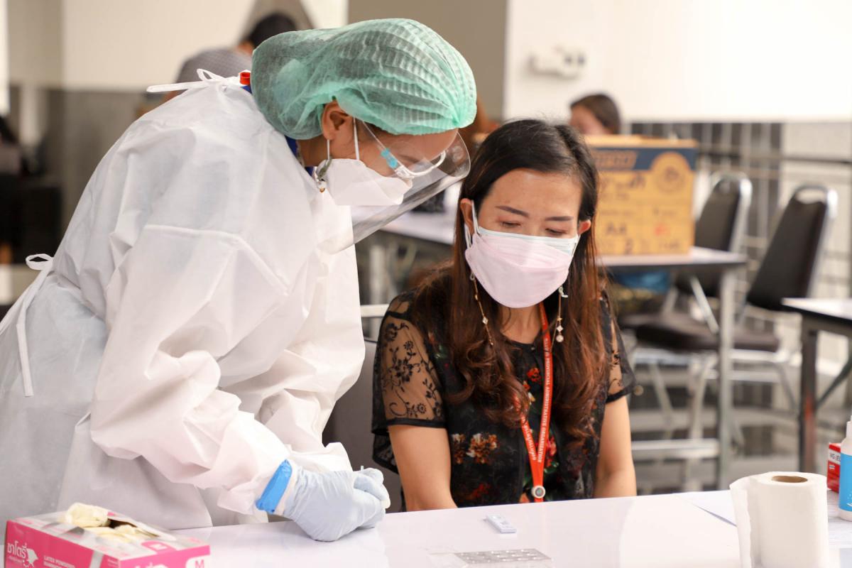 กองสาธารณสุข..ตรวจคัดกรองโควิดให้กับบุคลากร อบจ.ระยอง