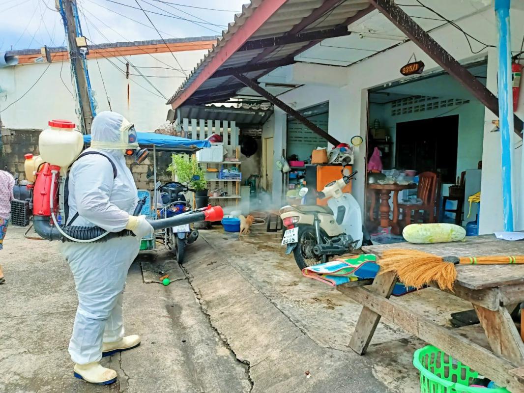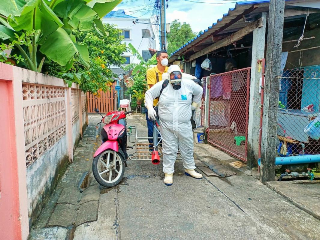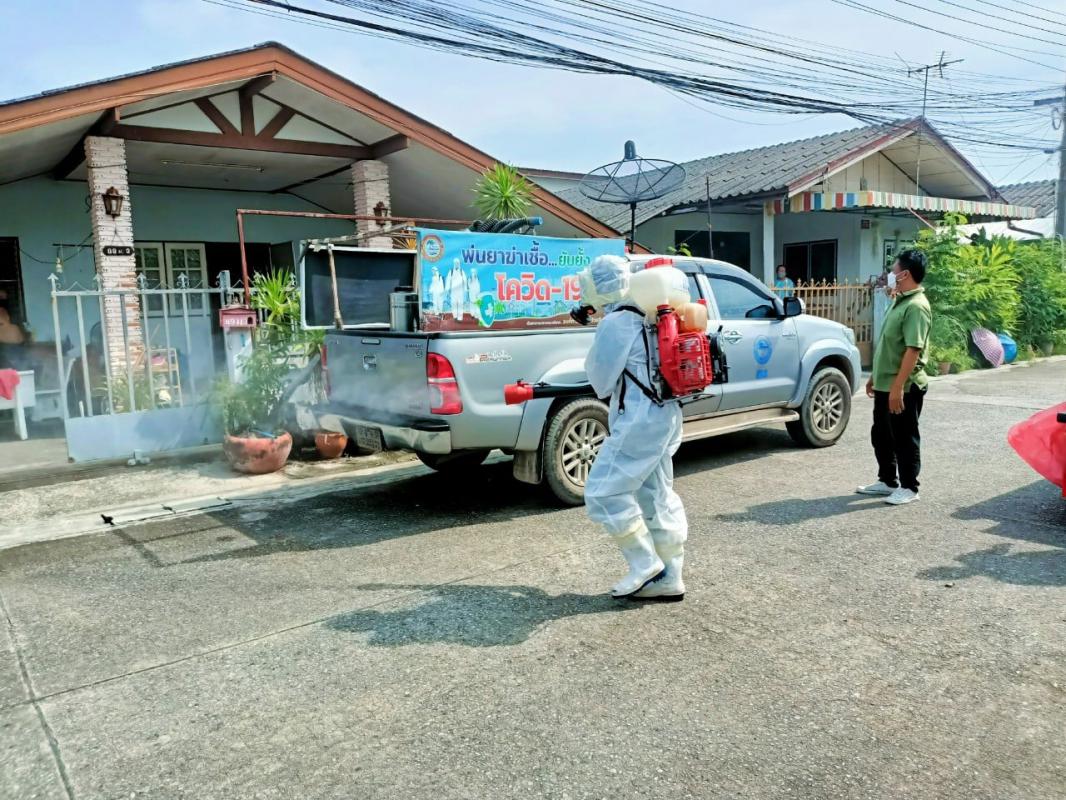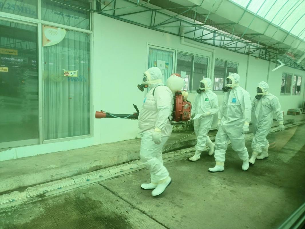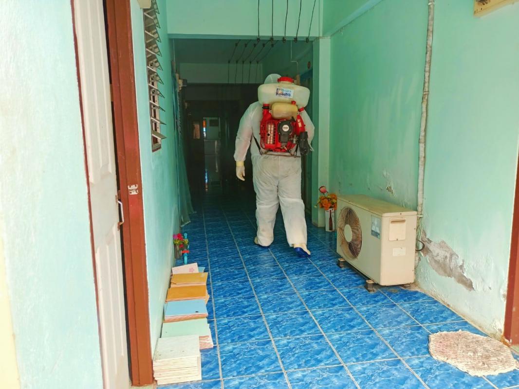 ฝ่ายป้องกันและบรรเทาสารณภัย ฉีดพ่นน้ำยาฆ่าเชื้อ