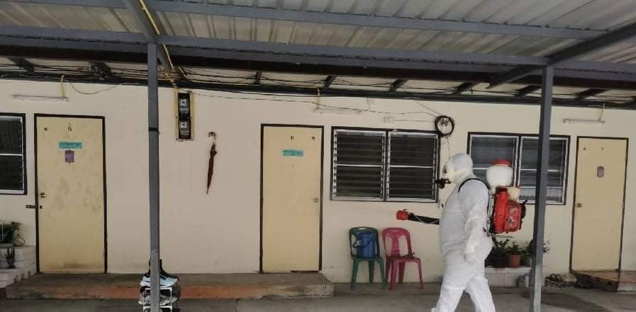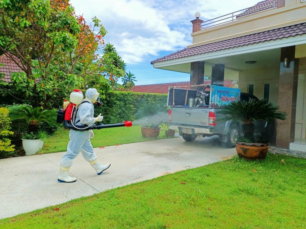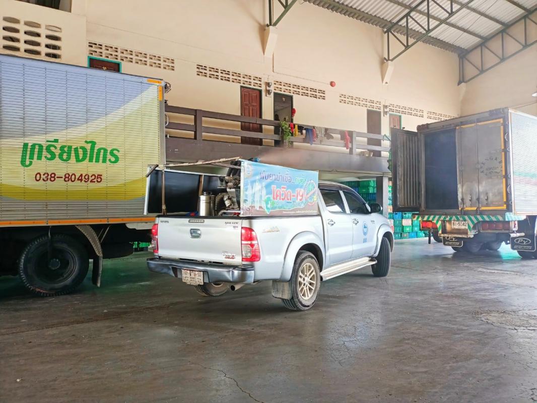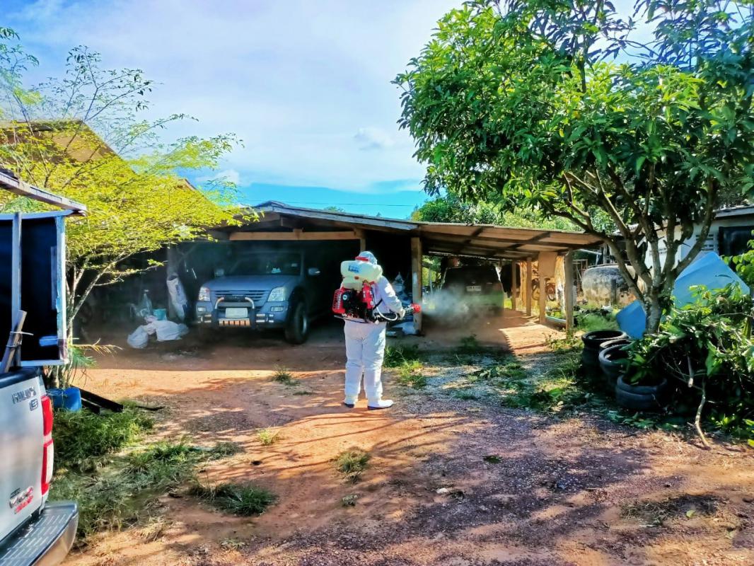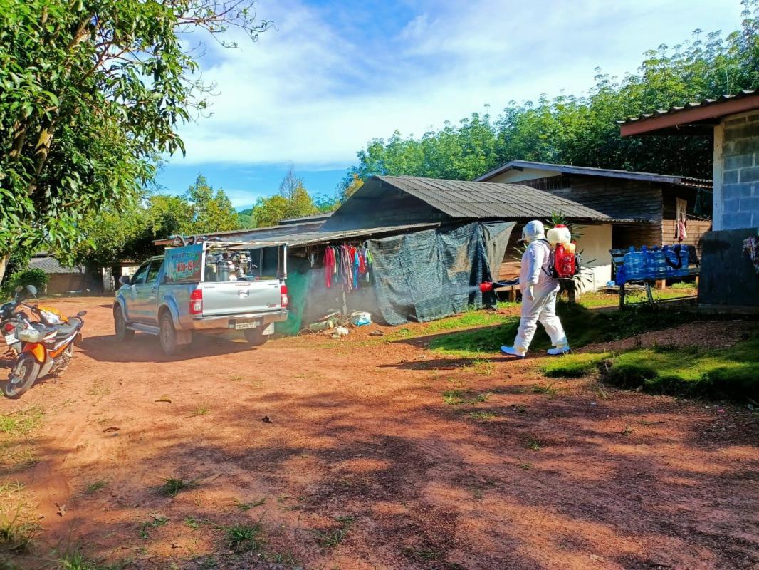 ฝ่ายป้องกันและบรรเทาสารณภัย ฉีดพ่นน้ำยาฆ่าเชื้อ