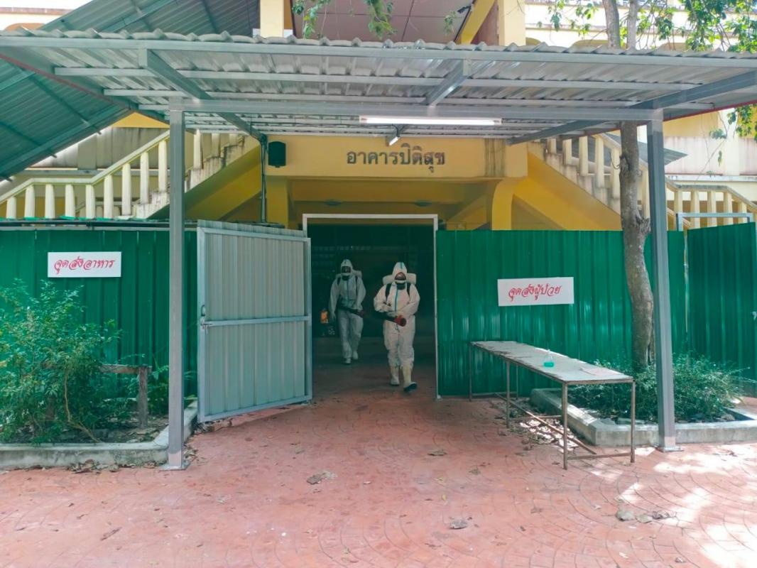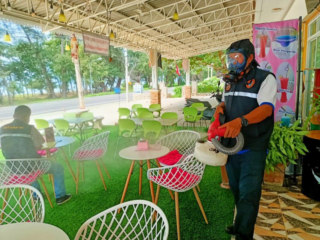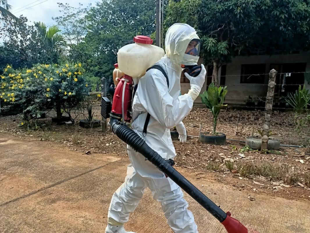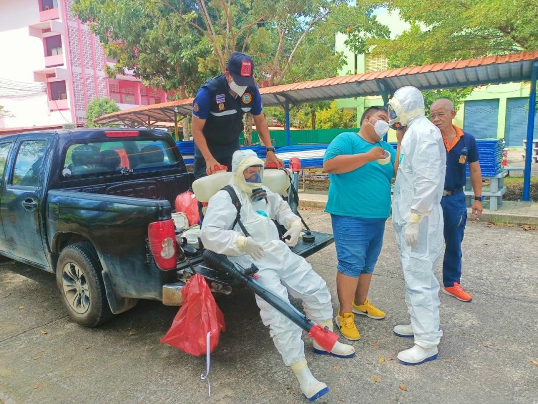 ฝ่ายป้องกันและบรรเทาสาธารณภัยฉีดพ่นน้ำยาฆ่าเชื้อ